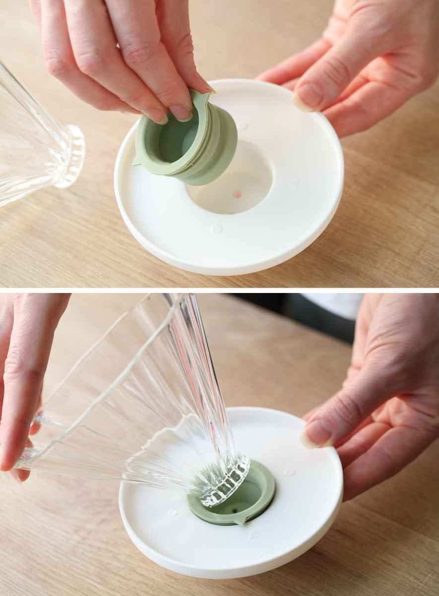 ホルダーにパッキンを入れ、ドリッパーをセットします。