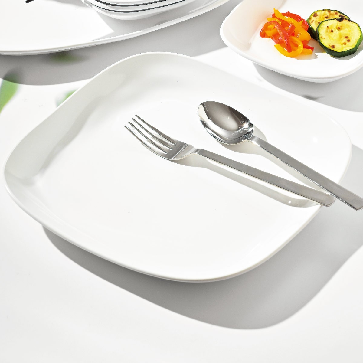 「モダンスクエア」シリーズの食器はスタッキングが可能なので、すっきりと収納する事ができます。食器洗い乾燥機・電子レンジに対応しているので、毎日のお手入れやお料理の温め直しも簡単です。