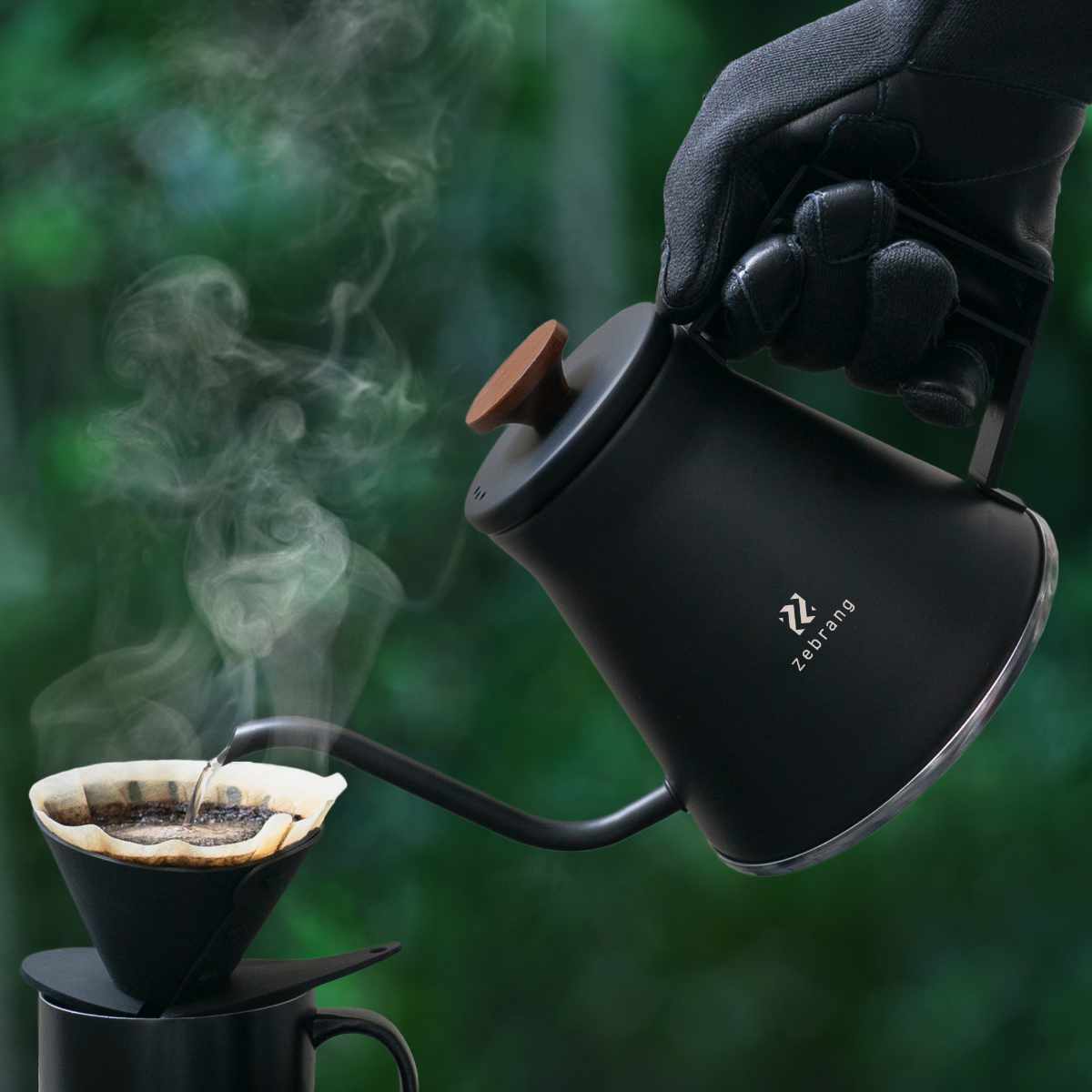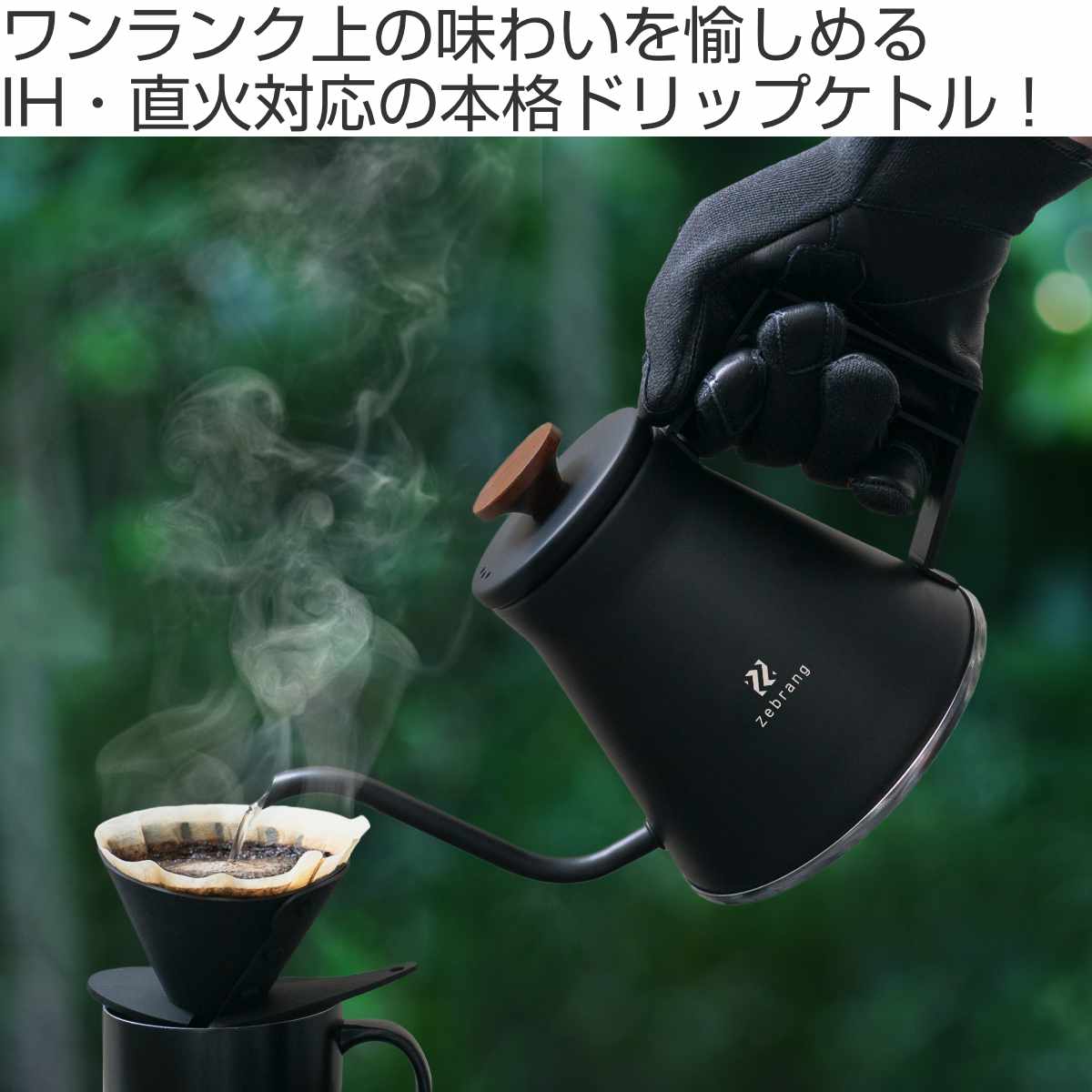 コーヒードリップに適した細口仕様のステンレス製ドリップケトルです。容量800mlとたっぷり入ります。細口かつこだわりの形状は、家でも外でもワンランク上の味わいをお愉しみいただけます。