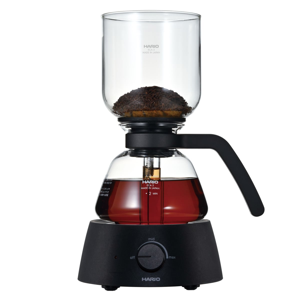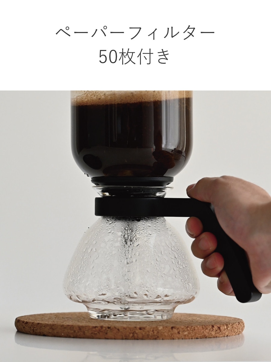 アナログサイフォンの愉しさを、電気式で再現したサイフォンコーヒーメーカーです。カフェや喫茶店の本格サイフォンコーヒーをもっと身近に楽しんでいただけます。電気ヒーターを採用しているので、アルコールランプのハードルをさげ、はだか火でないのも安心です。人気の3人用サイズです。