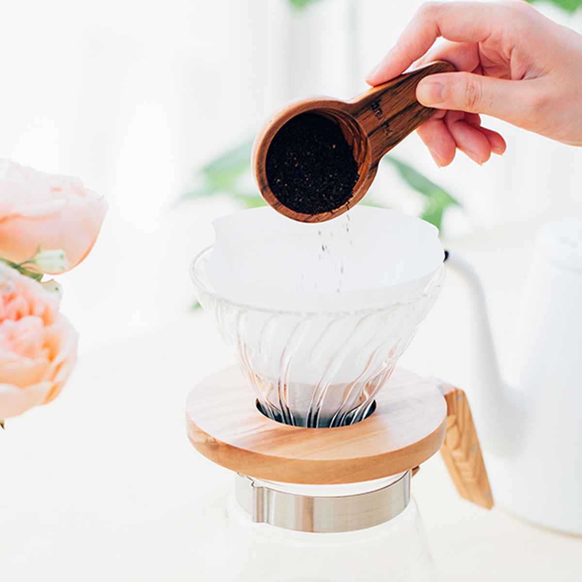 | 材質 | ドリッパー:耐熱ガラス ホルダー:オリーブウッド 内側ホルダー:シリコーンゴム |