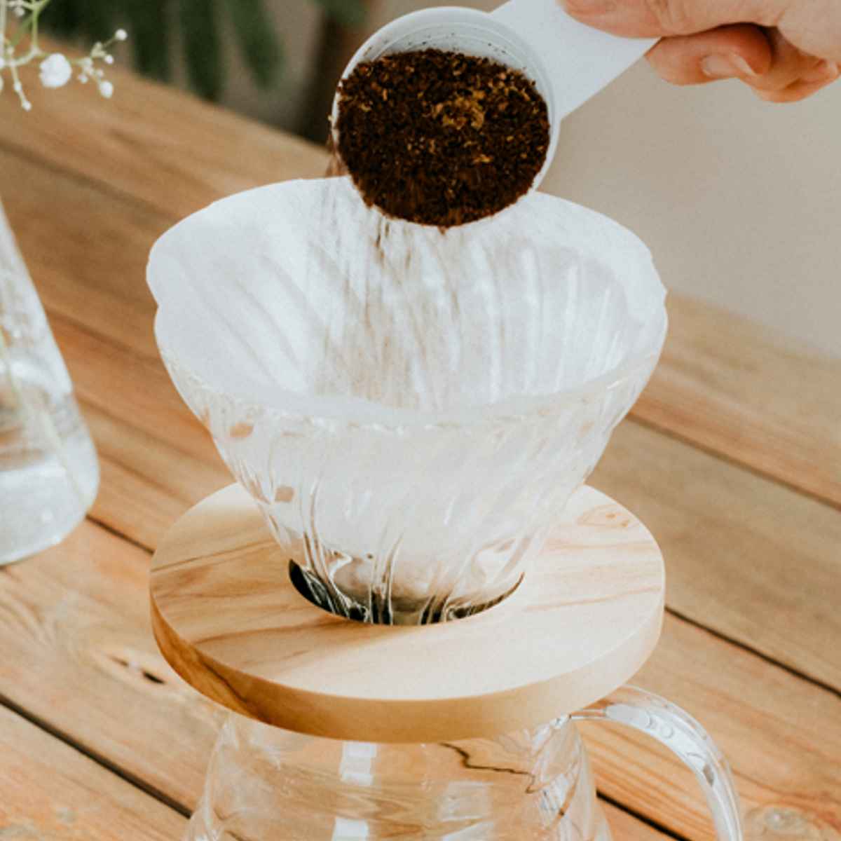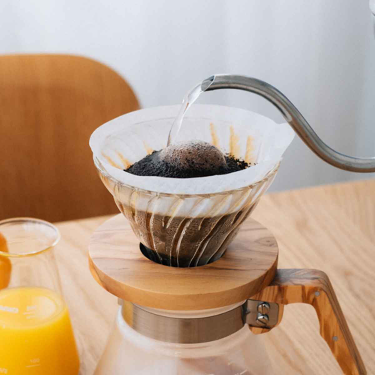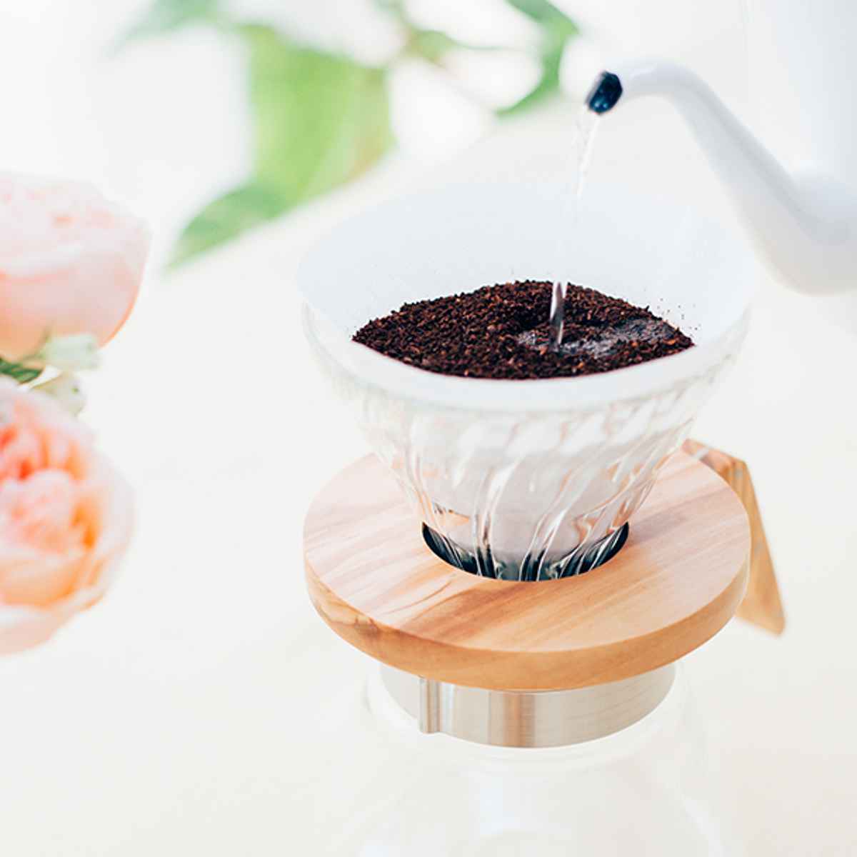 | 材質 | ドリッパー:耐熱ガラス ホルダー:オリーブウッド 内側ホルダー:シリコーンゴム |