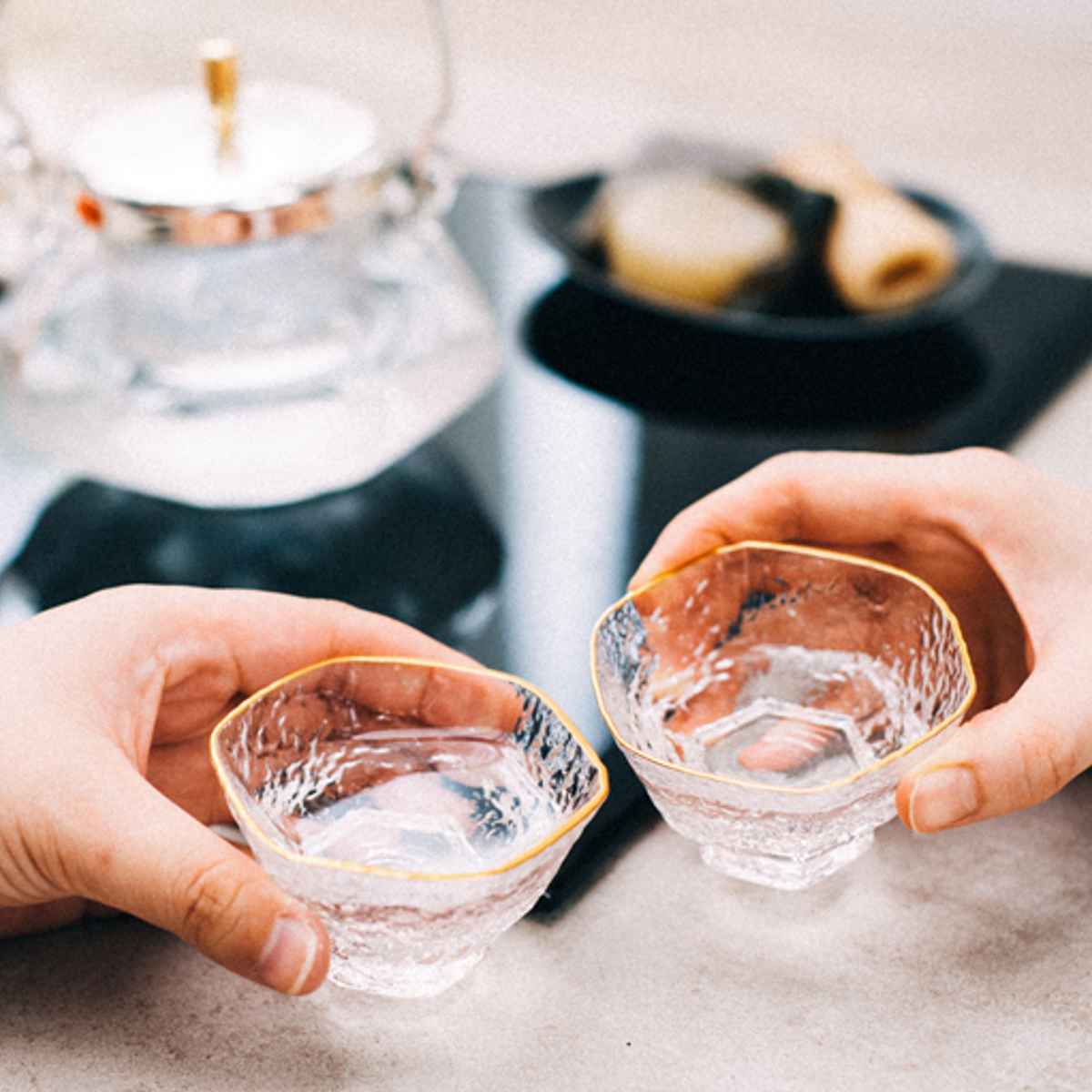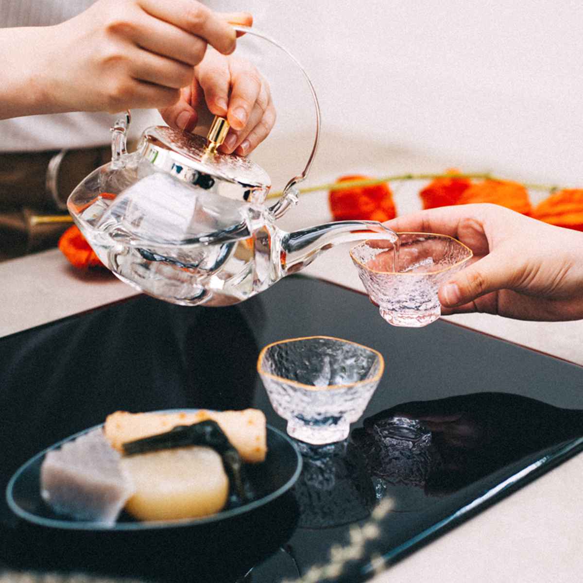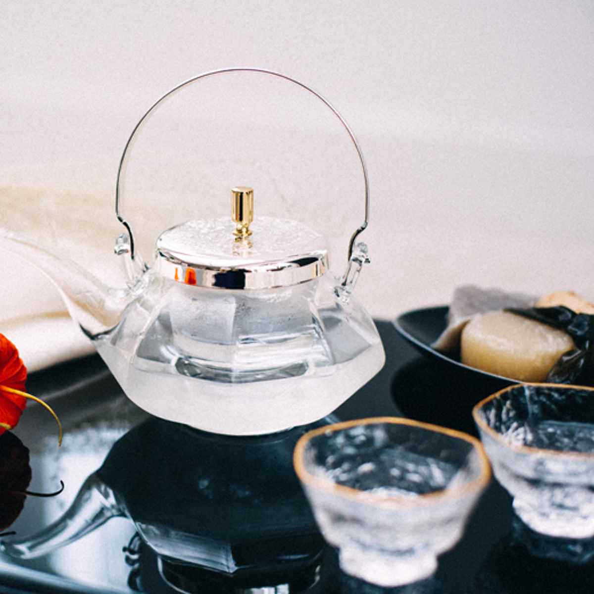 地炉利は耐熱ガラス製なので、湯煎でお好みの温度のお酒を愉しむことができます。
