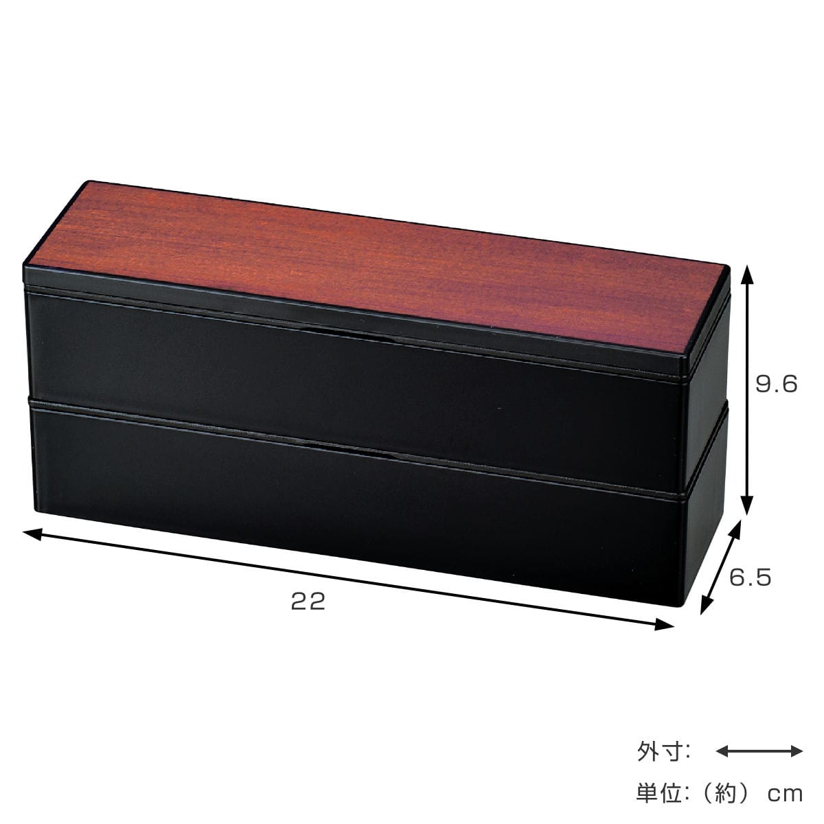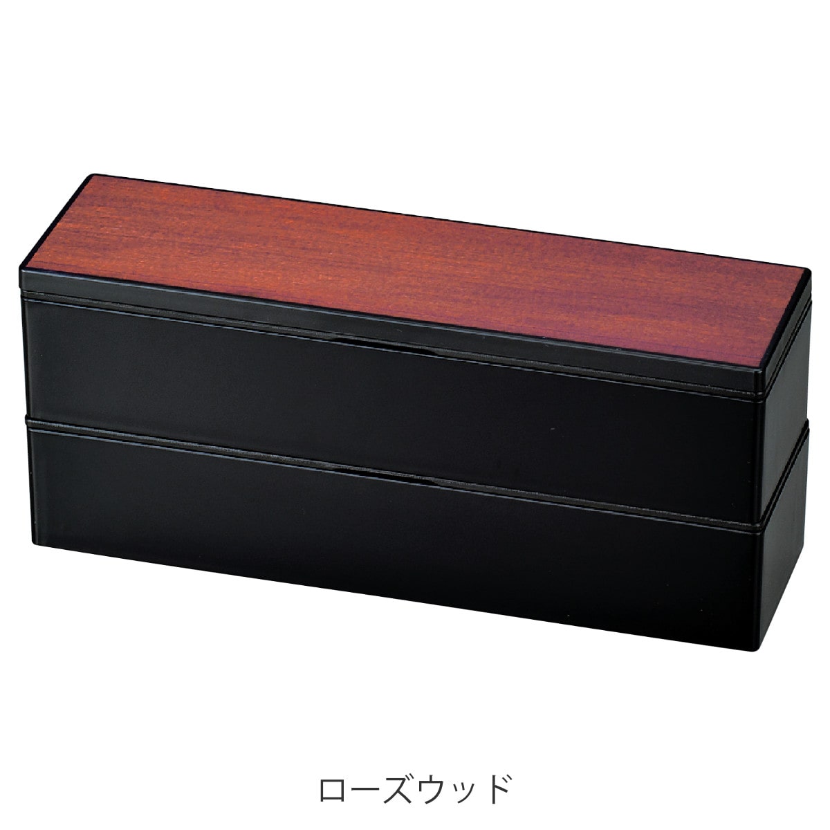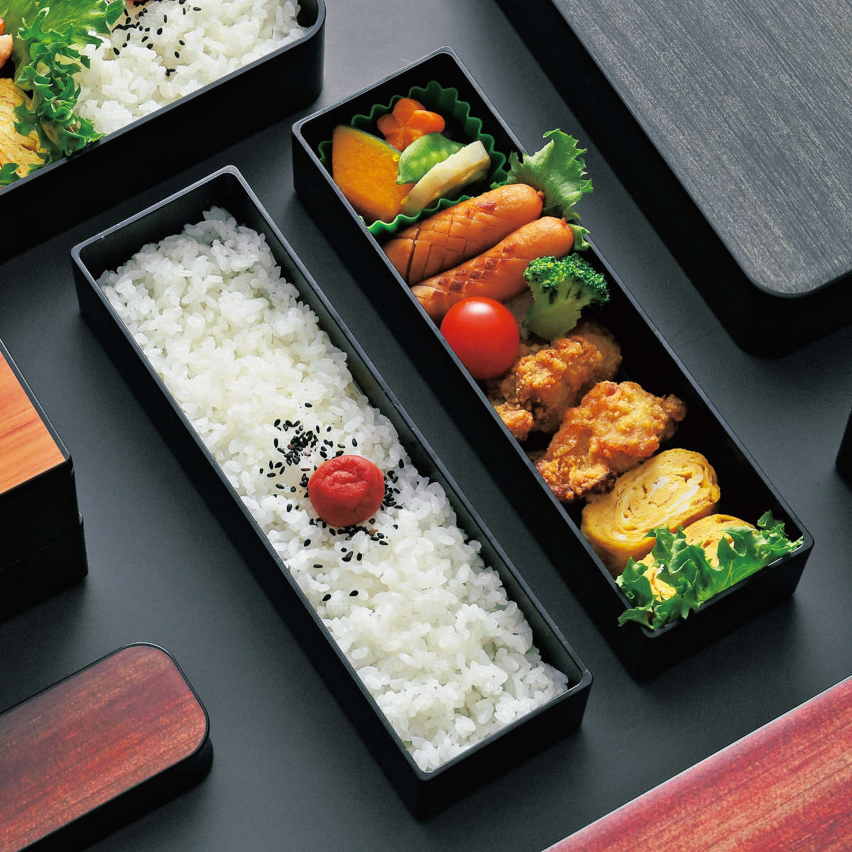 男性やしっかり食べたい女性にぴったりなサイズのお弁当箱です。スリムだけどしっかり入り、電子レンジと食洗機にも対応しているのも嬉しいポイントです。本体はシックな黒、フタは木目調のシンプルなデザインで、男女問わず長くお使いただけます。
