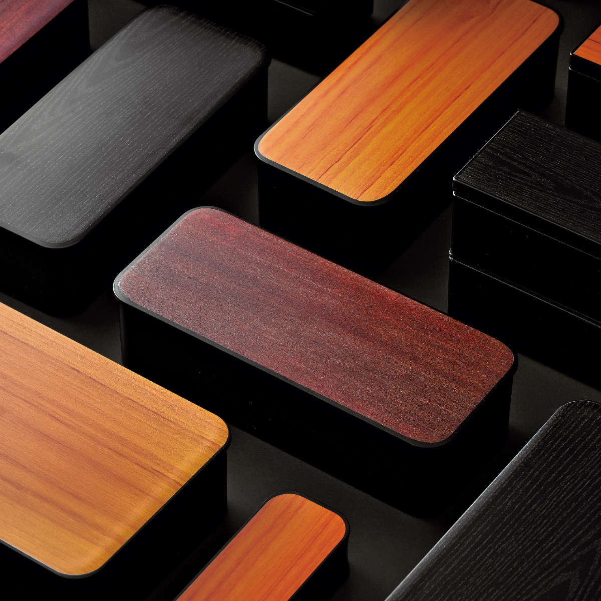 木目調のスタイリッシュなランチグッズが揃ったシリーズです。インテリアに合わせて選べるような木目がお洒落で、カフェ気分でお弁当を楽しめます。落ち着いた色から明るい色まであり、お好みの色をお選びいただけます。