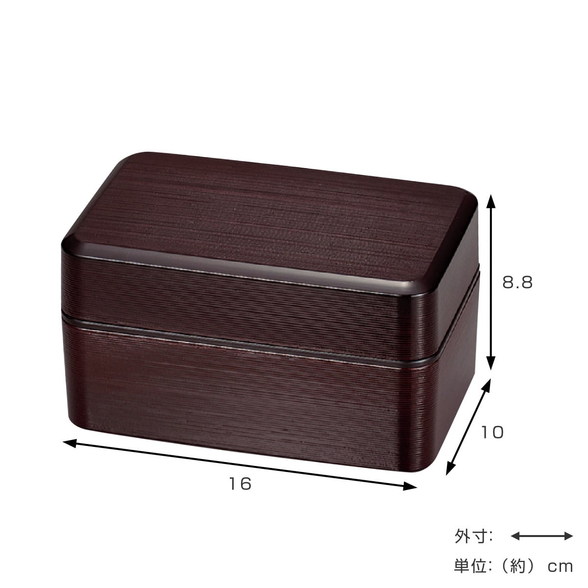 形は定番の飽きのこないもので、長く使えるお弁当箱です。漆塗りの中でも、山中塗りの技法「千筋」を用いているので落ち着いた高級感のある仕上がりで、質感が上品かつ贅沢な気分にさせてくれます。シール蓋以外はすべて電子レンジと食洗機に対応しているので、温かい食事を楽しんだ後は、お手入れも簡単に行えます。