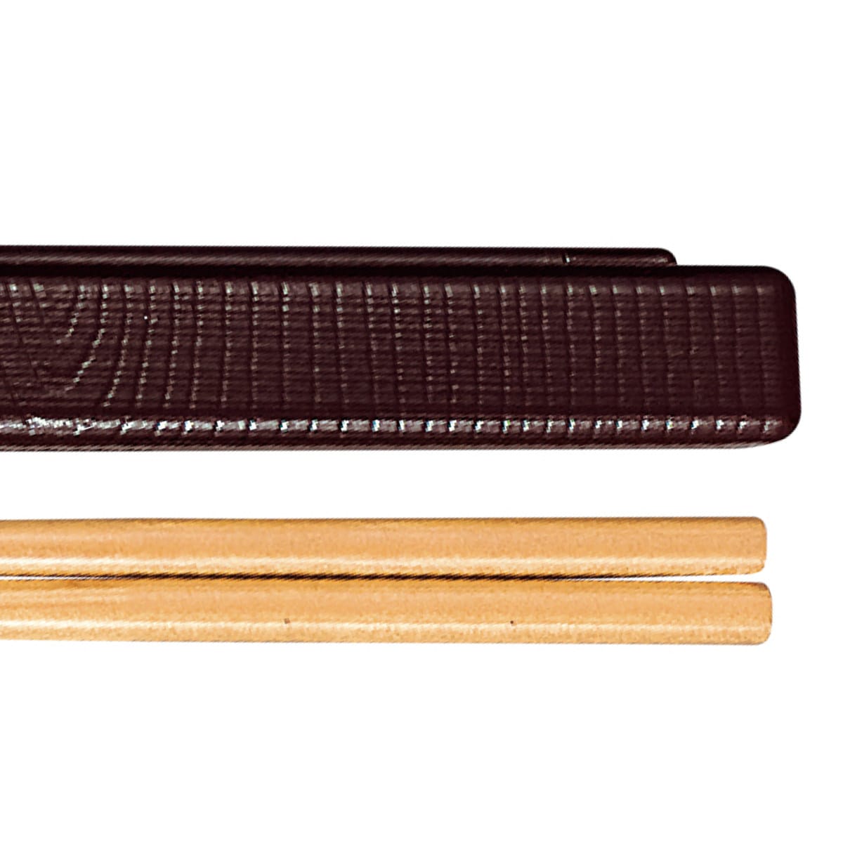 箸箱は美しい木目を表現した上品なデザインです。18cmのお箸なので握りやすく、スリムなサイズ感なので持ち運びやすい、外出時のマイ箸としても重宝します。