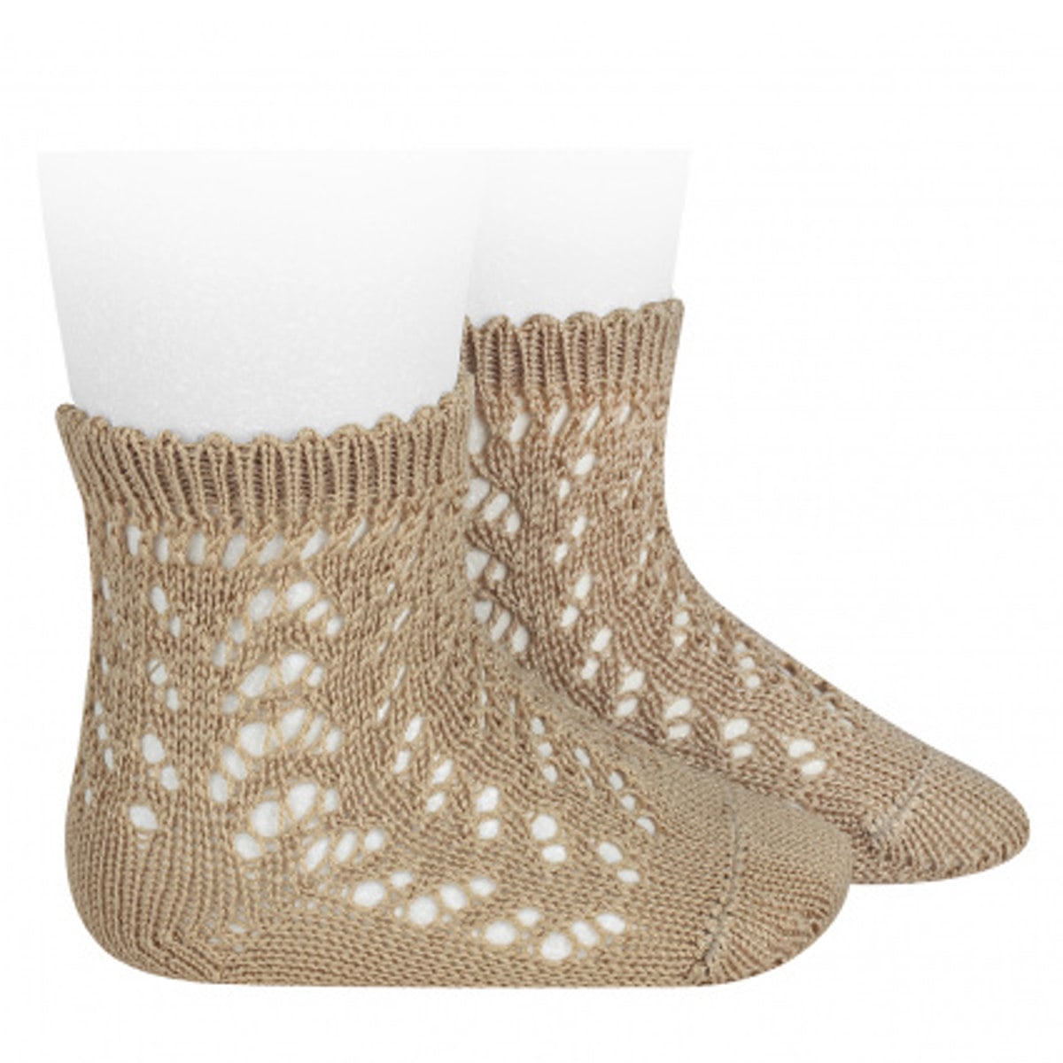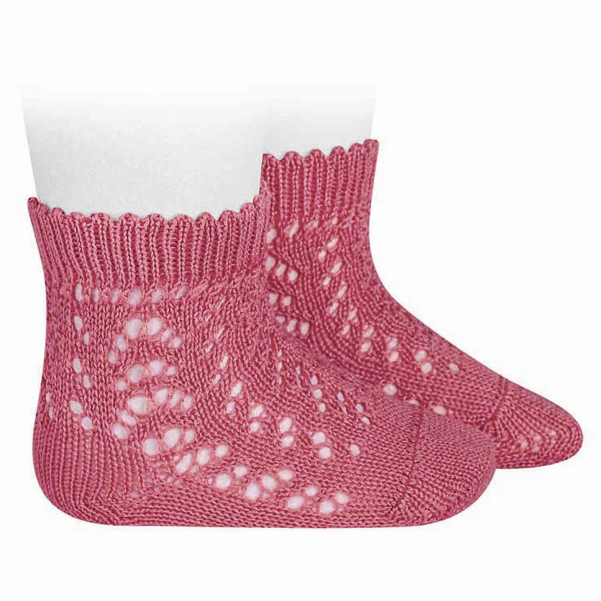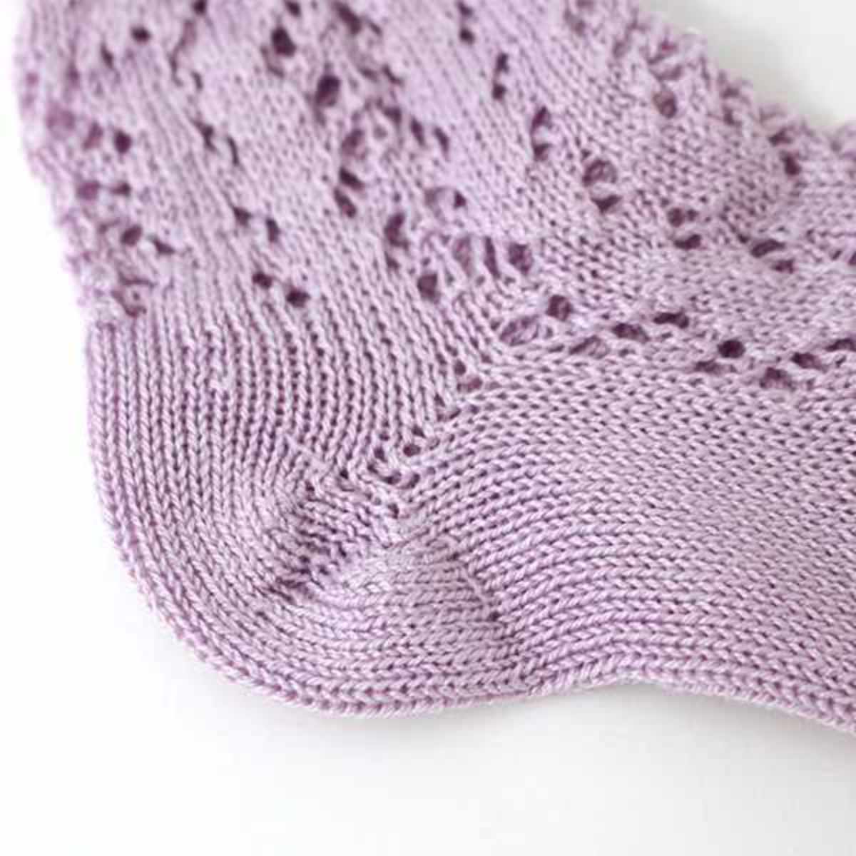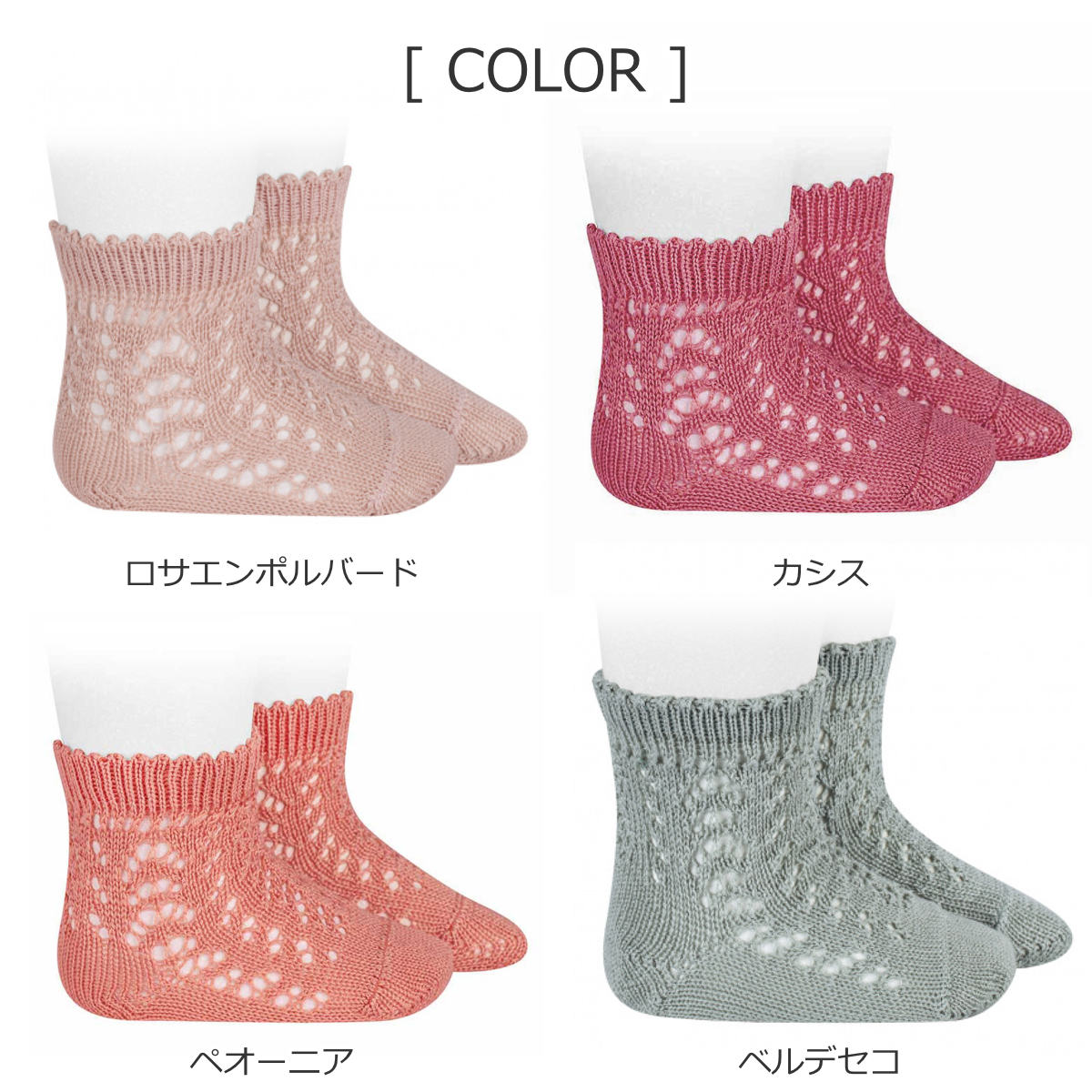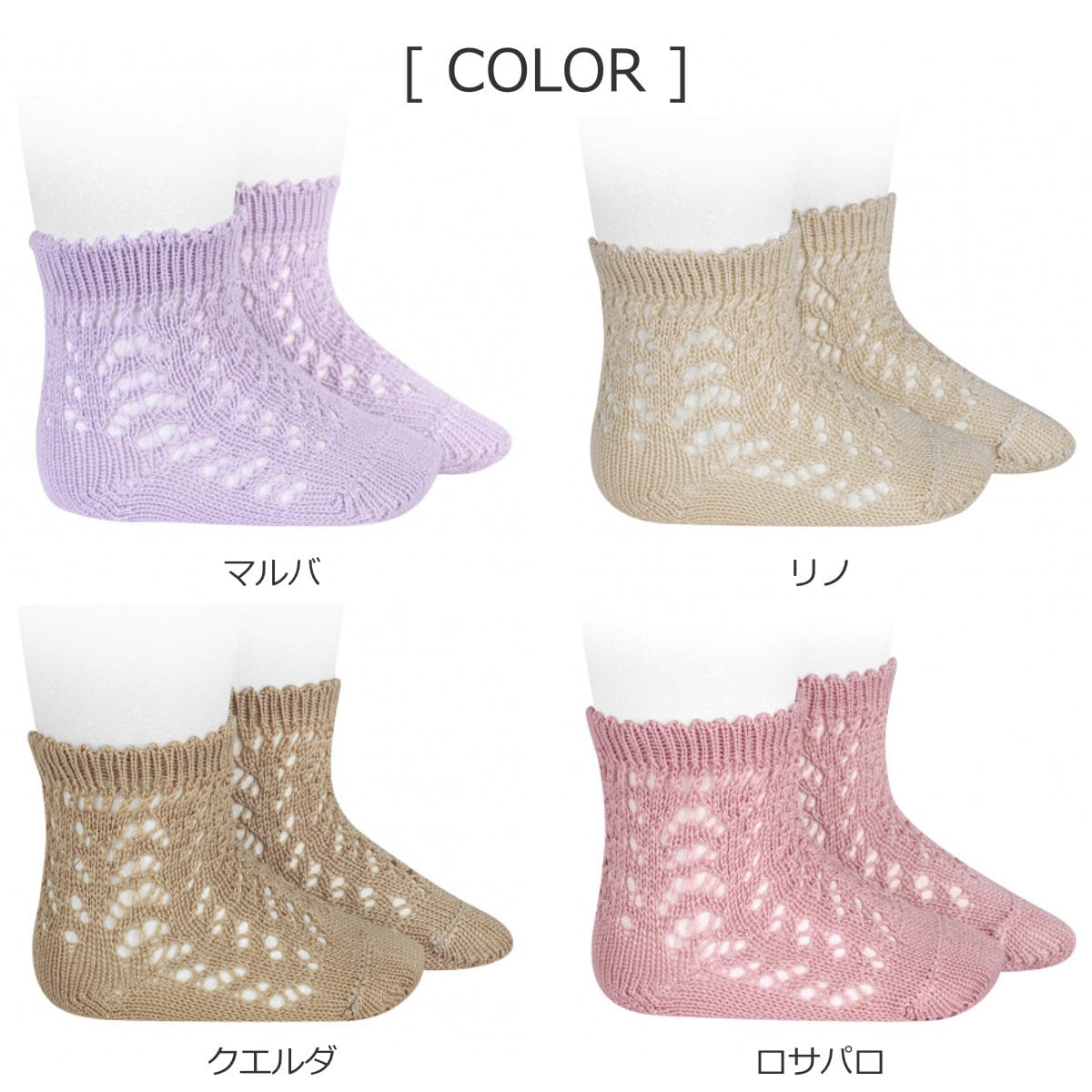 全体に施された透かし編みが、足元を可愛く演出してくれる子ども用靴下です。シンプルながらもお洒落に見えるデザインなので、普段使いはもちろん、入園式や卒園式などのセレモニーシーンにもお使いいただけます。