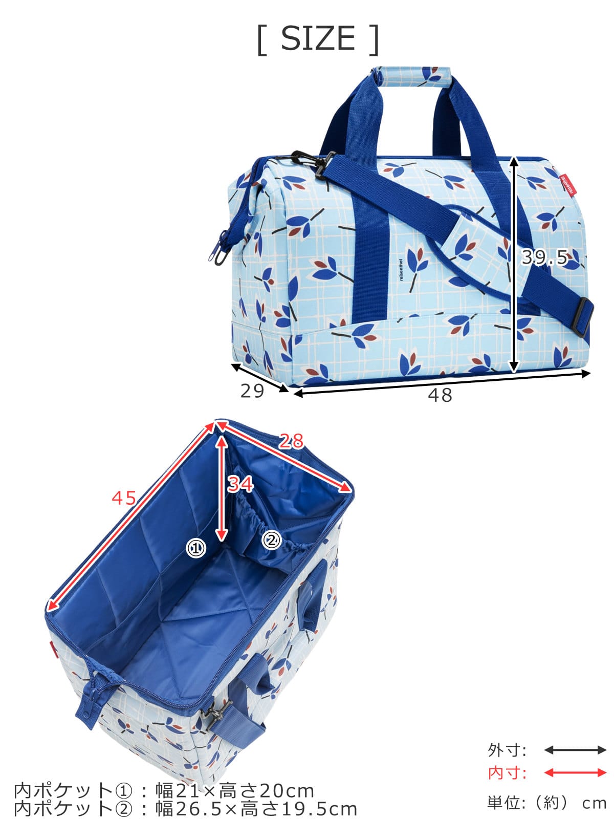 | サイズ | 外寸:約 幅48×奥行29×高さ39.5(cm) 内寸:約 幅45×奥行28×高さ34(cm) ショルダーベルト:最長 約140cm |