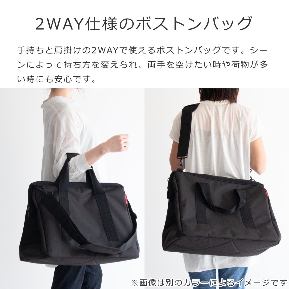 手持ちと肩掛けの2WAYで使える丈夫なボストンバッグです。シーンによって持ち方を変えられ、両手を開けたい時や荷物が多い時にも安心です。