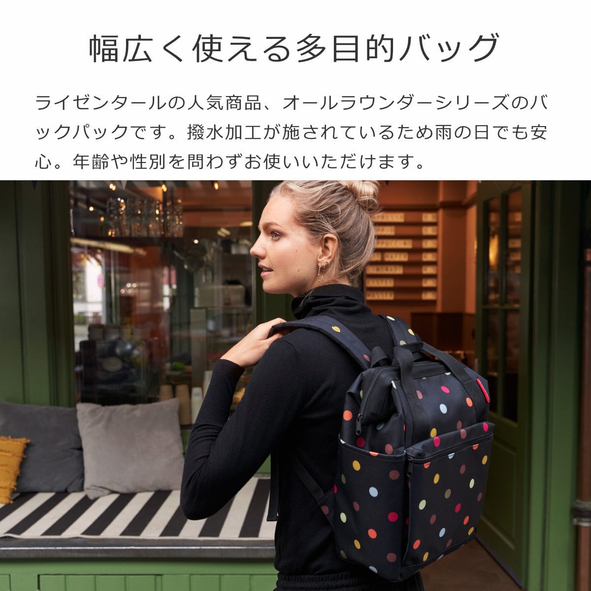 ライゼンタールの人気商品、ALL ROUNDER(オールラウンダー)シリーズのバックパックです。スッキリとしたシルエットで使いやすいリュックタイプは年齢や性別を問わずお使いいただけます。撥水加工が施されているため雨の日でも安心です。