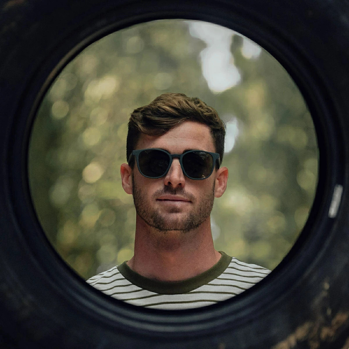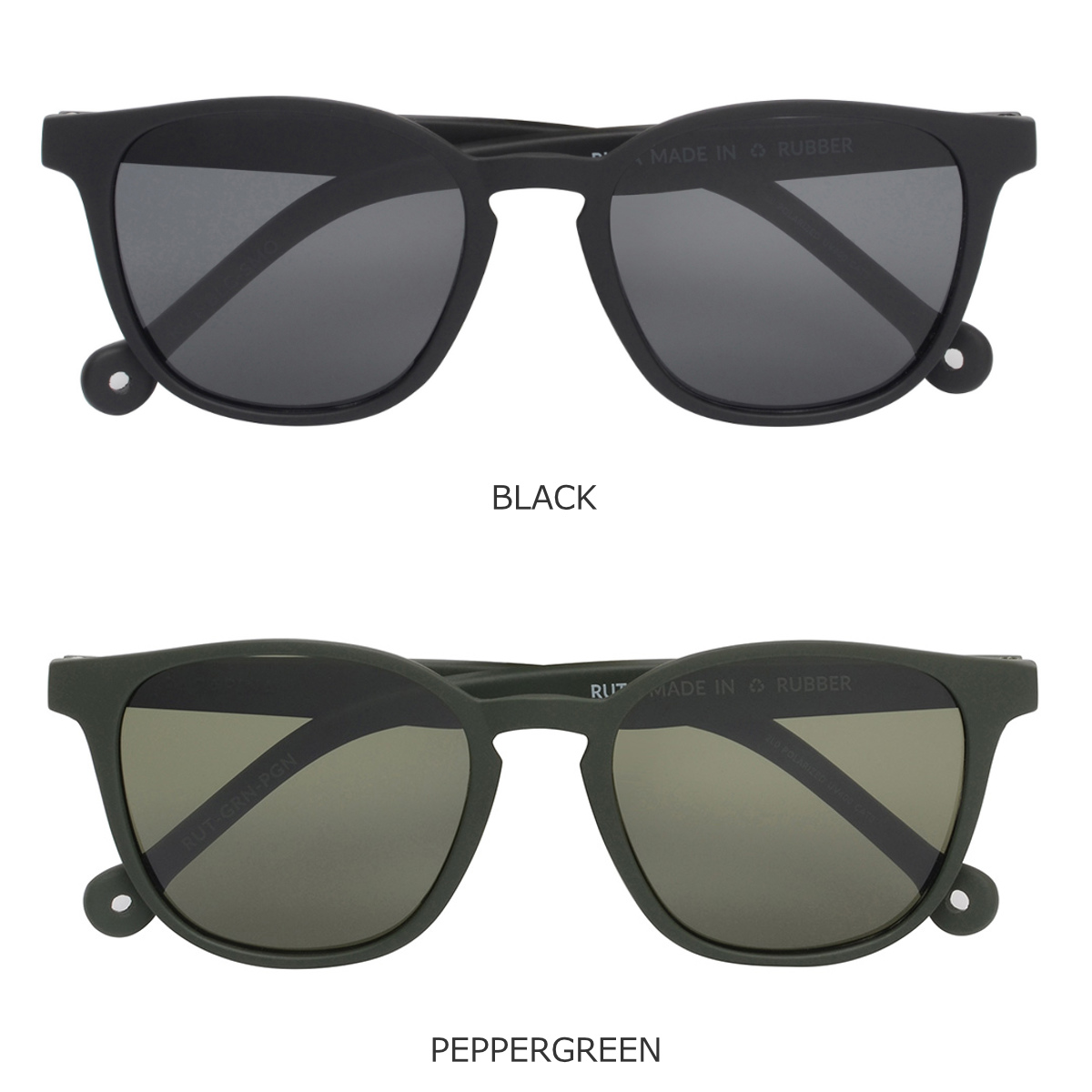 フレームにリサイクルされたタイヤゴムを使用した環境に優しいサングラスです。色味がくっきりとしたマット素材のフレームで、耐久性があります。