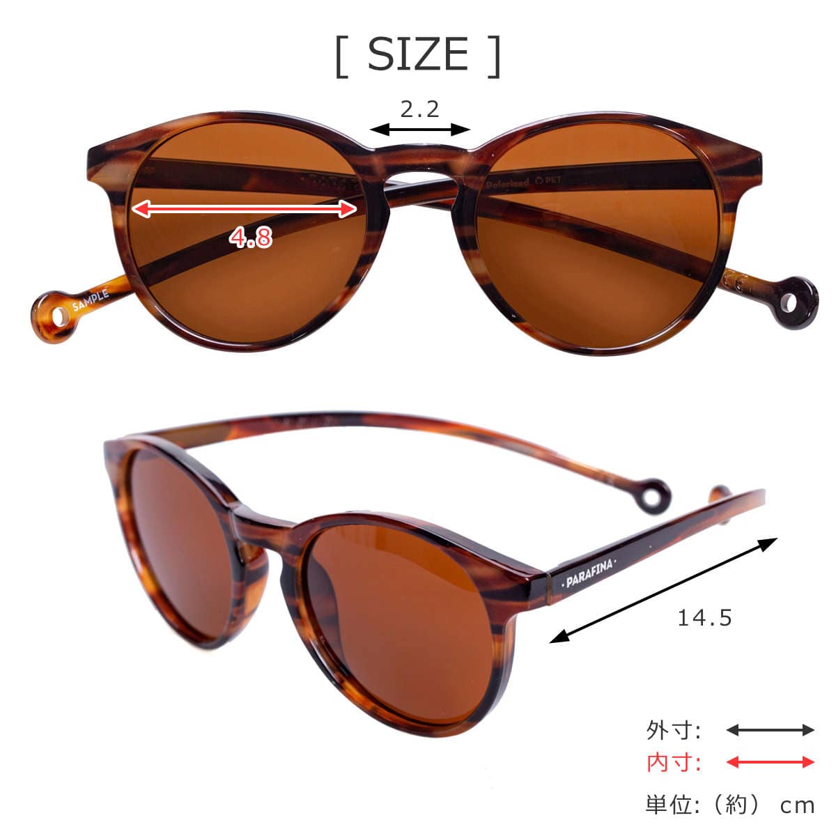 | サイズ | レンズ幅:約 4.8(cm) ブリッジ:約 2.2(cm) テンプル:約 14.5(cm) |