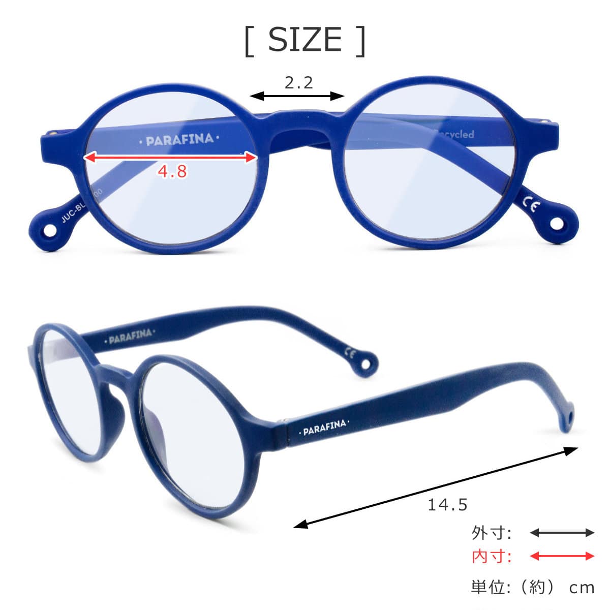 | サイズ | レンズ幅:約 4.8(cm) ブリッジ:約 2.2(cm) テンプル:約 14.5(cm) |