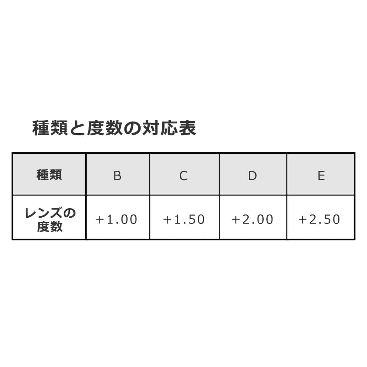 +1.00から+2.50まで4つの度数からお選びください。