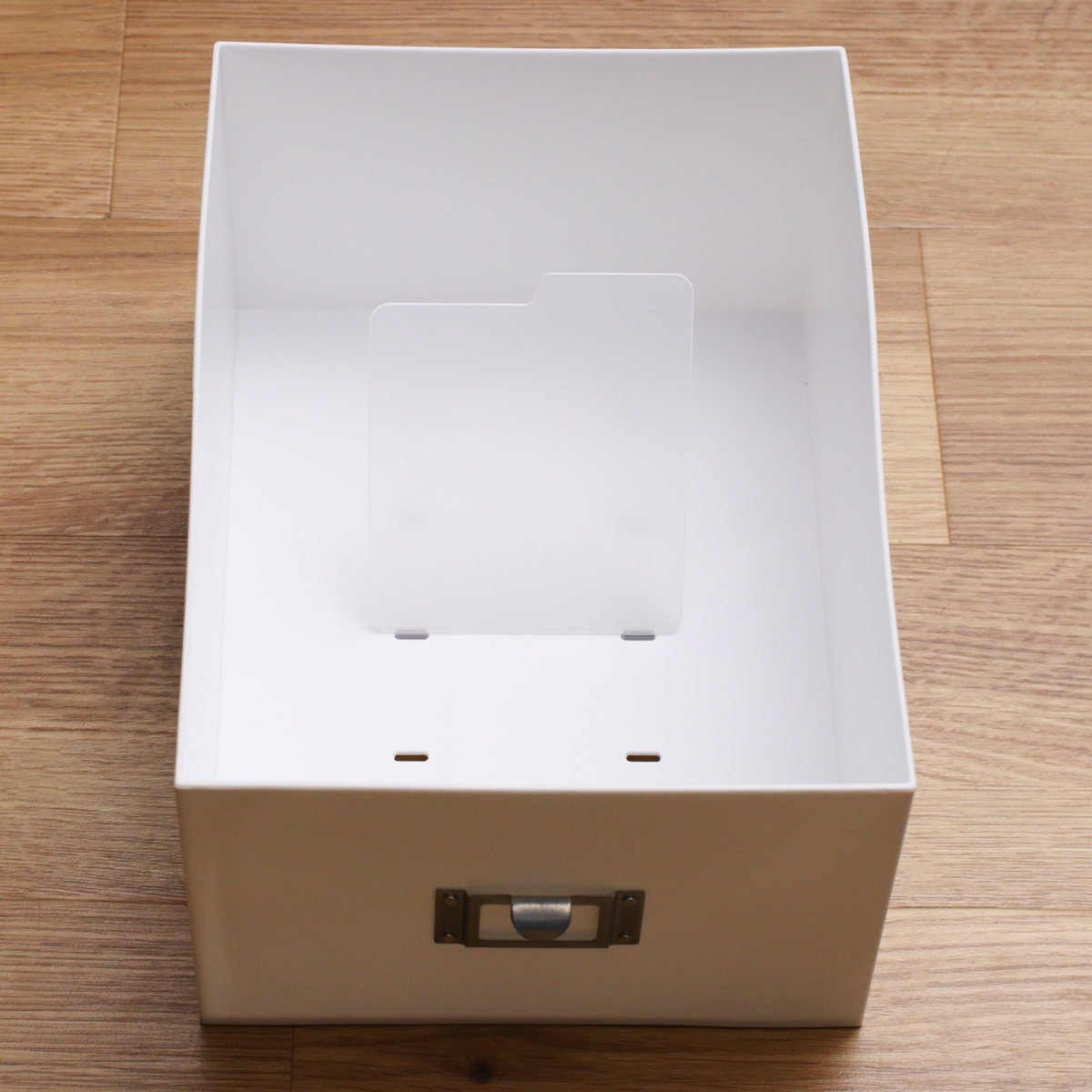 浅型引出しは、A4用紙や小物の収納にぴったりです。深型引出しは、A4はもちろんA5ノートが縦に収まり、仕切り板も付属しています。