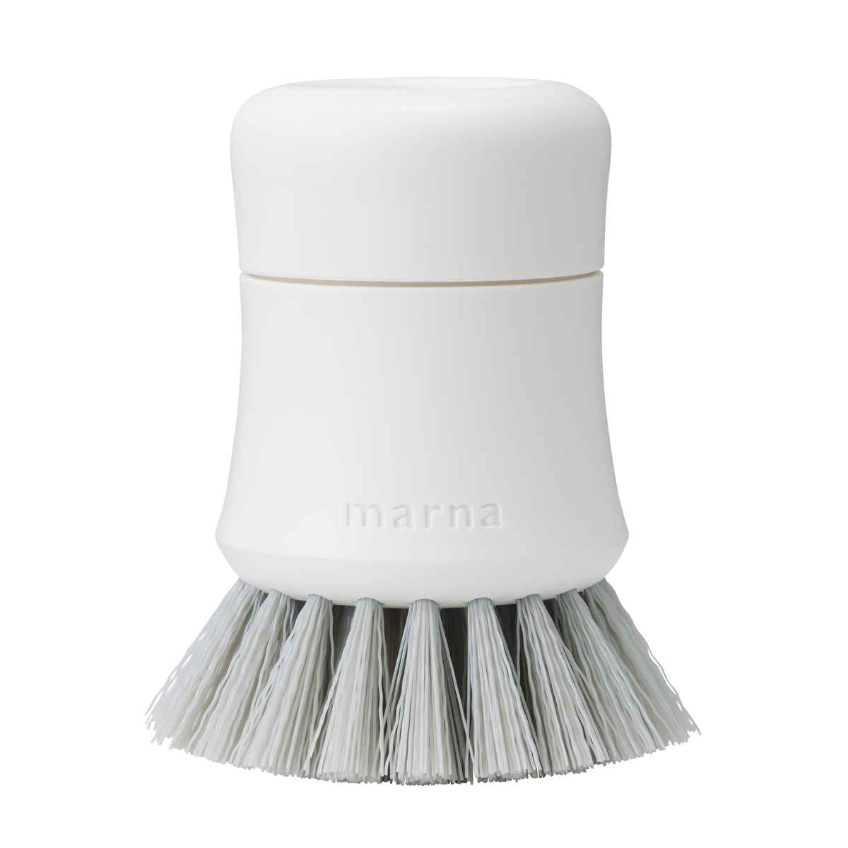 洗剤を入れて使うキッチンブラシです。ワンプッシュでサッと洗えます。口が大きいので、洗剤の補充がしやすい形状です。洗剤を出す際は垂直にして、ボタンの中心をまっすぐ押して下さい。直接洗剤が手に付かないので、手荒れの気になる方にもおすすめです。