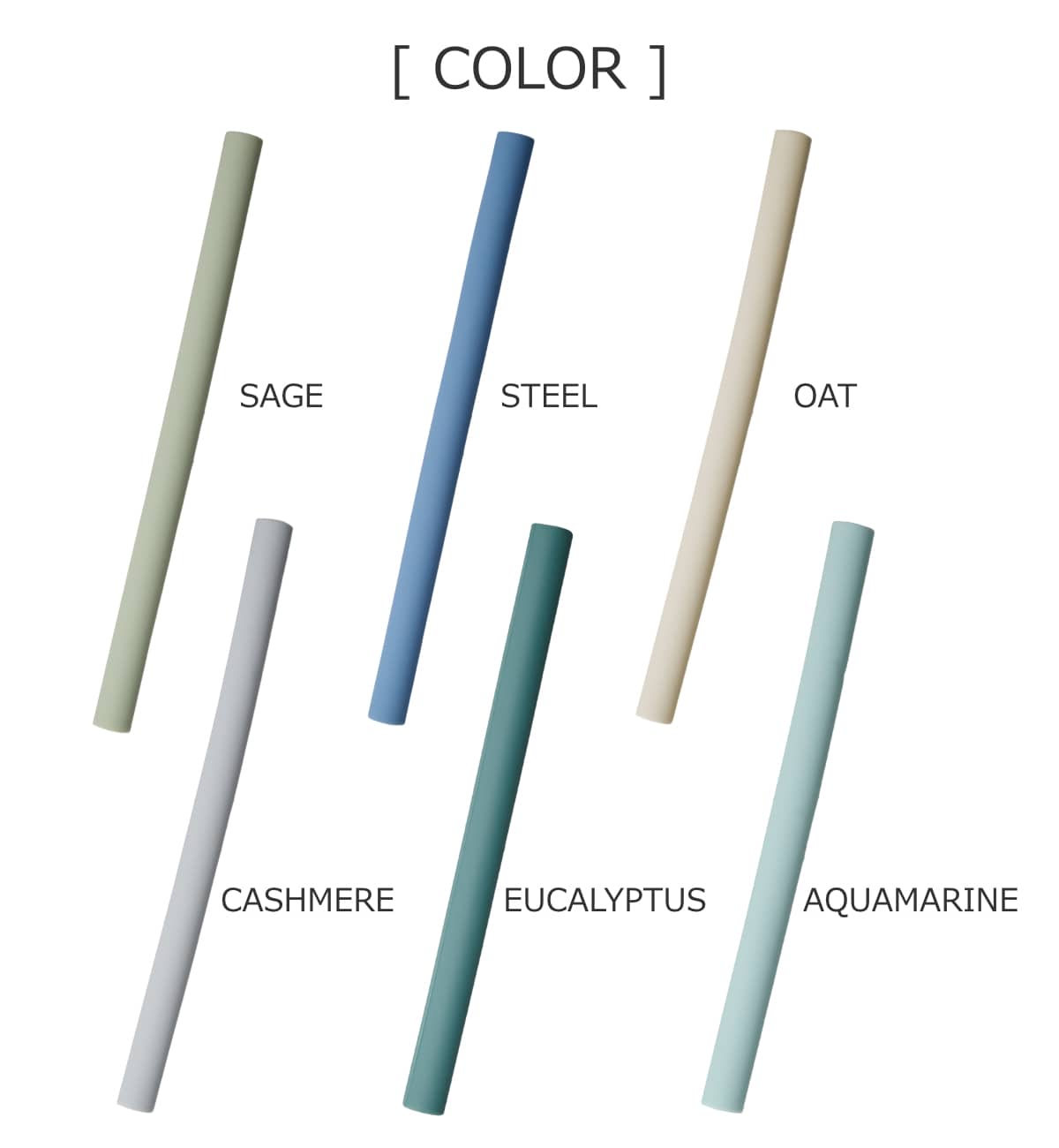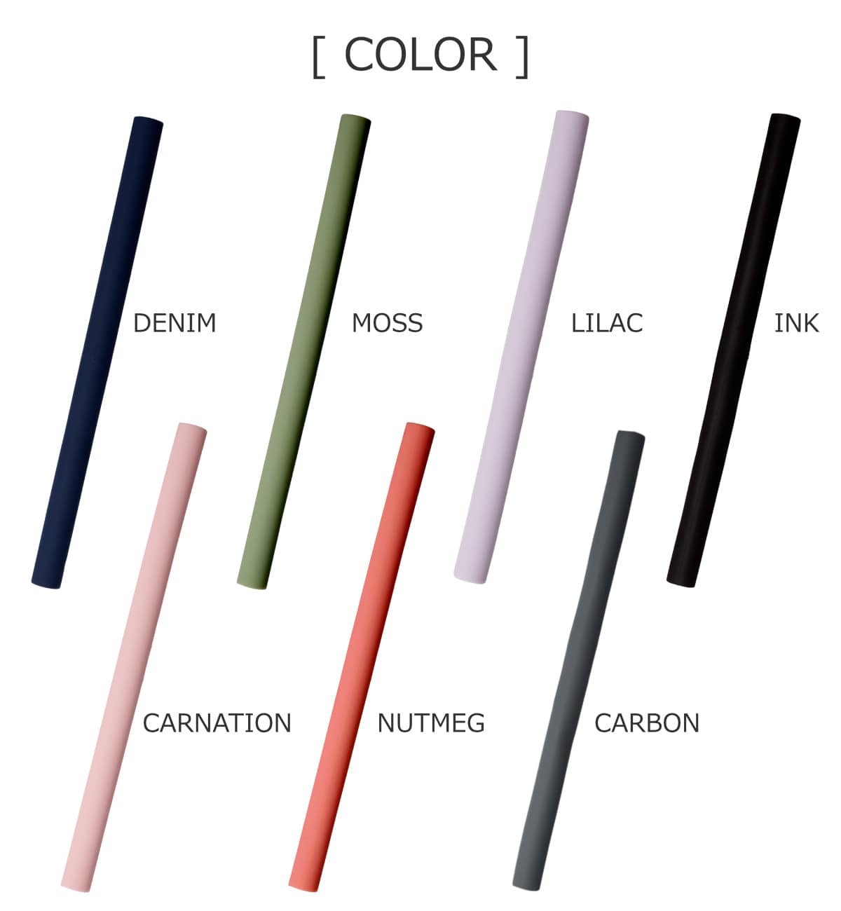 | 種類 | AQUAMARINE、CARBON、CARNATION、CASHMERE、DENIM、EUCALYPTUS、INK、LILAC、MOSS、NUTMEG、OAT、SAGE、STEEL |