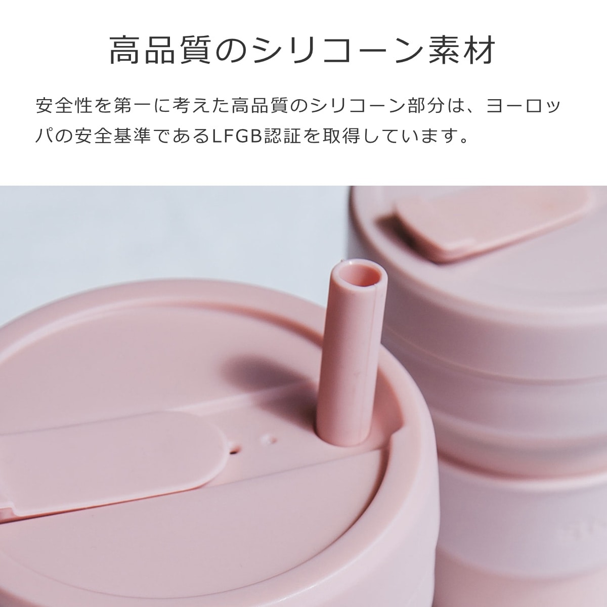 素材には高品質のシリコーンを採用しています。安全性を第一に考えて各部品はBPAフリー、鉛フリー、フタル酸フリー、接着剤や化学薬品も不使用です。シリコーン部分は、ヨーロッパの安全基準であるLFGB認証を取得しています。