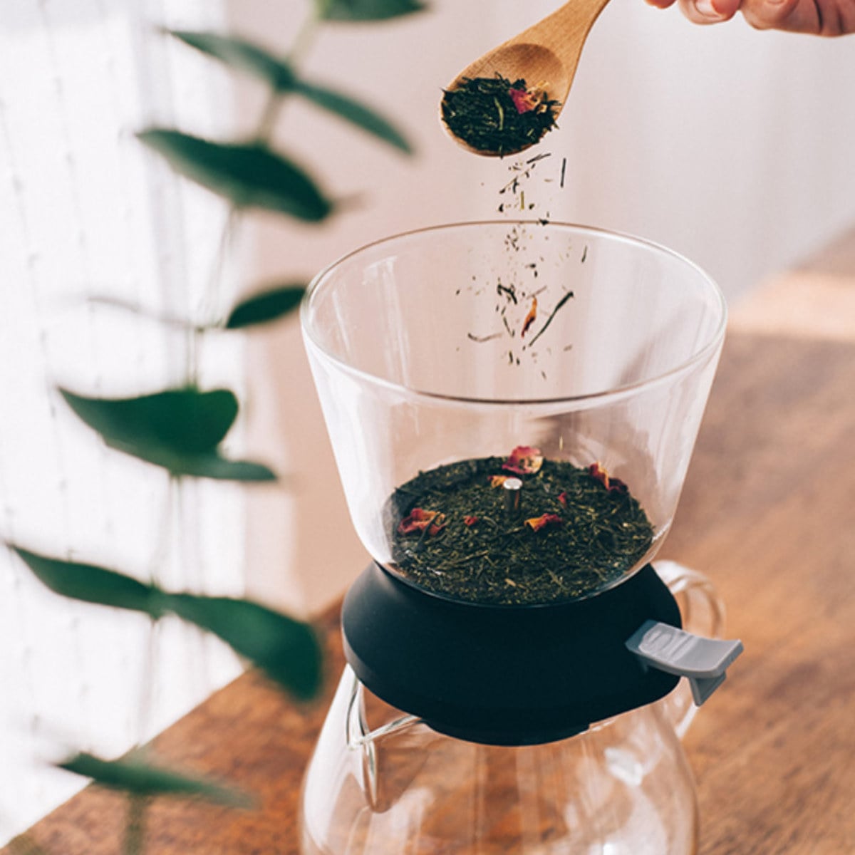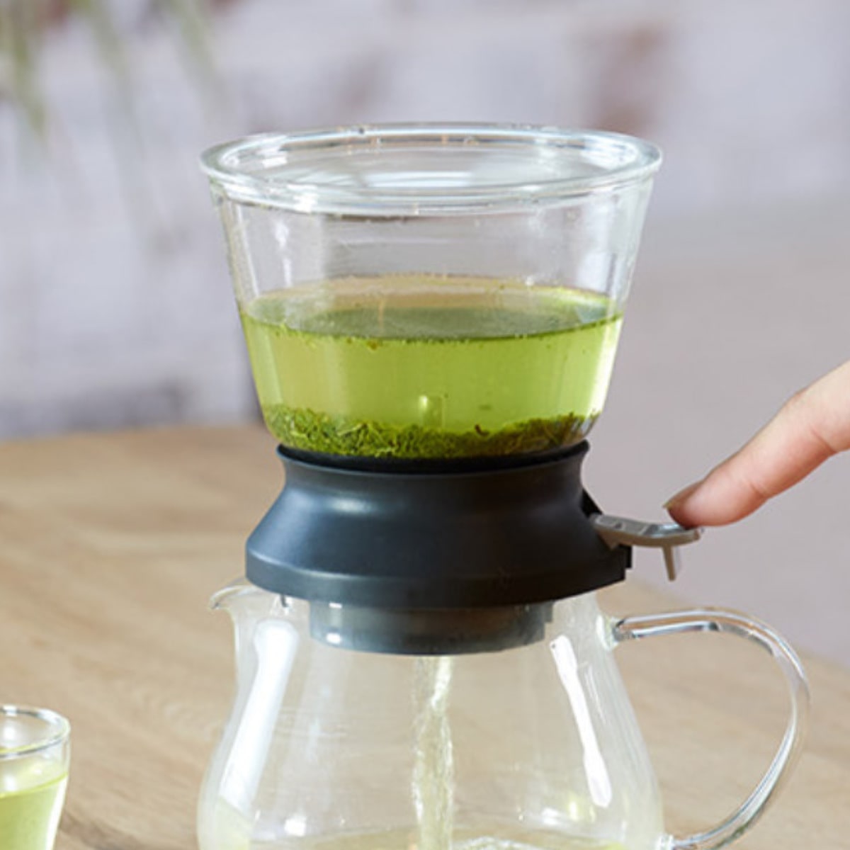 日本茶はもちろん、紅茶・ハーブティーなど様々なお茶を抽出しながら、キレイな茶葉の色を愉しめます。抽出中の時間も含めて、いつものティータイムを華やかに演出します。