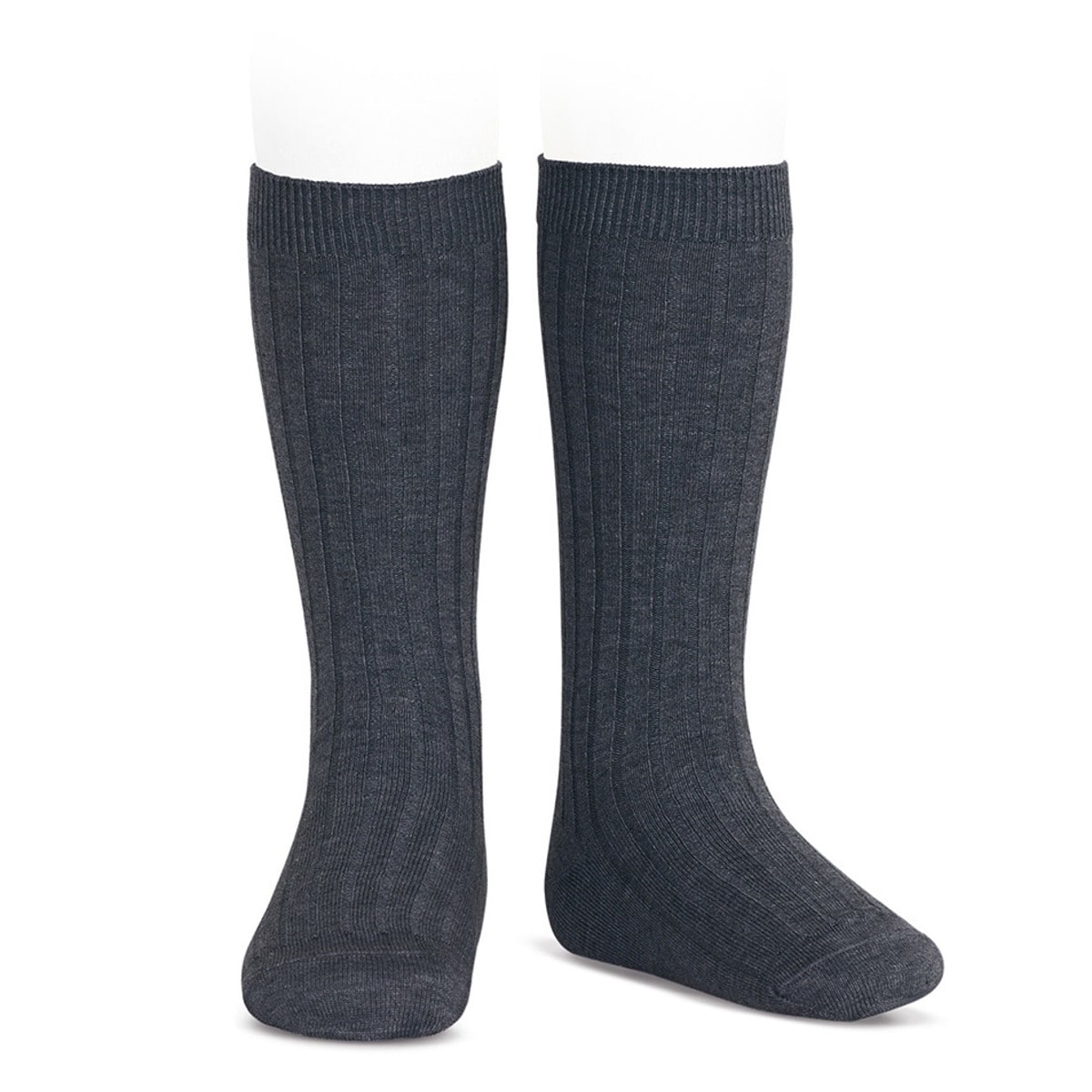 ■縦のラインが脚をスッキリ見せてくれるリブハイソックスです。