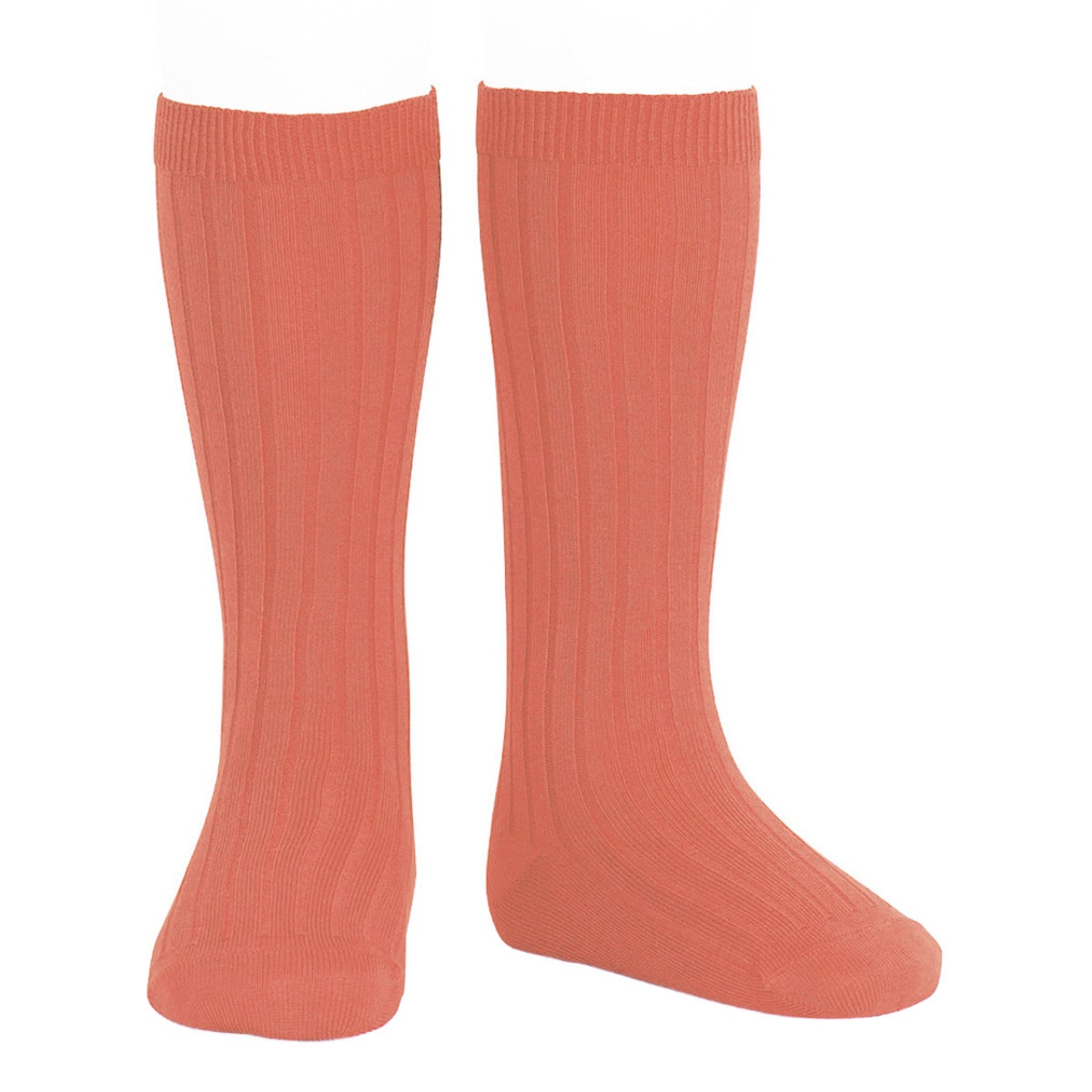 ■縦のラインが脚をスッキリ見せてくれるリブタイプのハイソックスです。