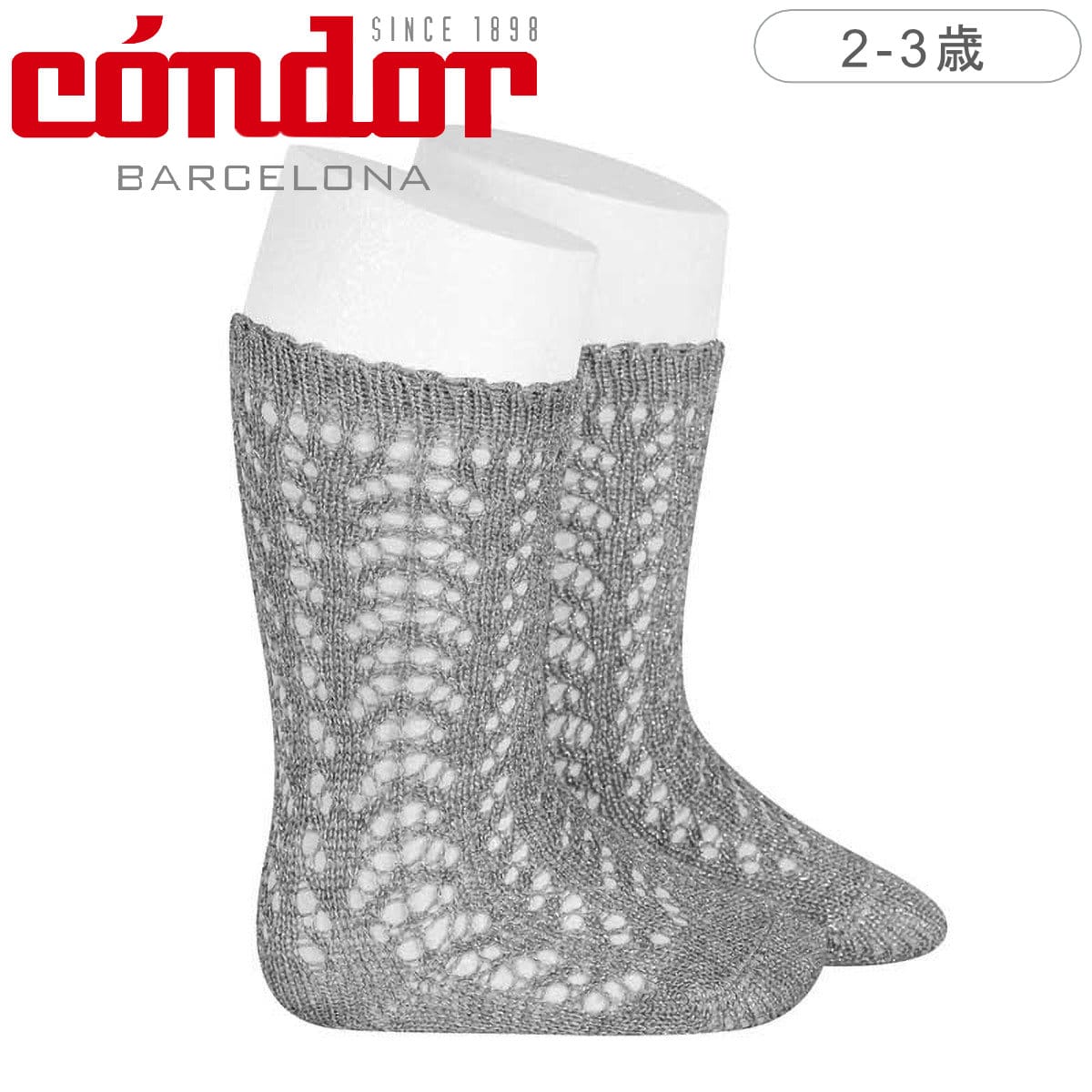 ■表面にラメ状のメタリック加工を施した、透かし編みのニーソックスです。