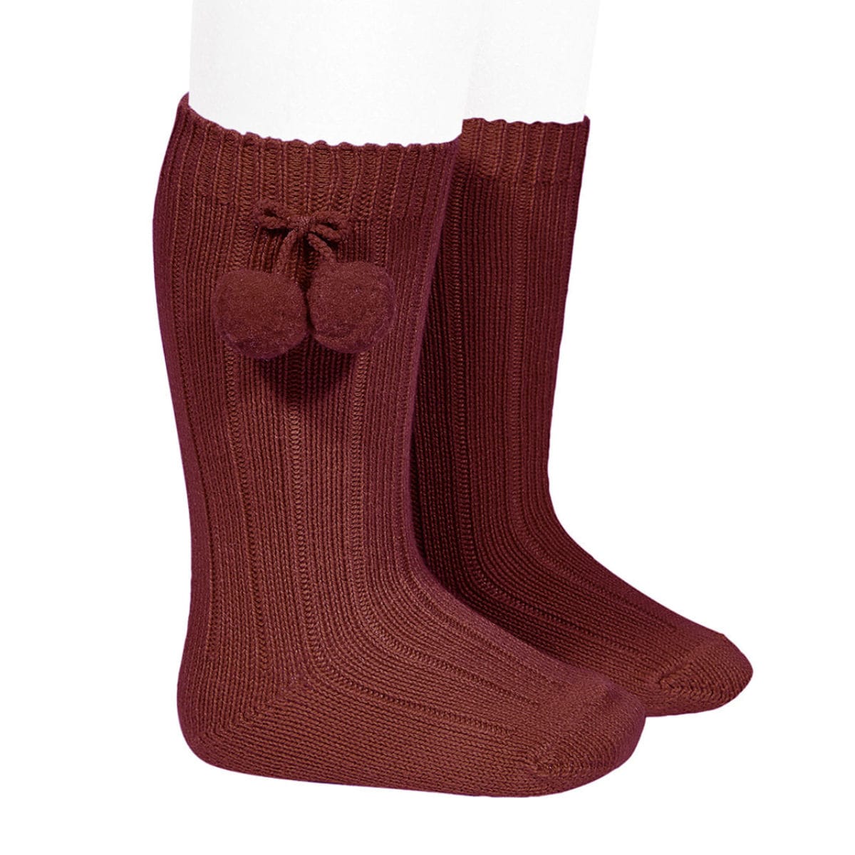 ■サイドにポンポンが付いた可愛いデザインのリブソックスです。