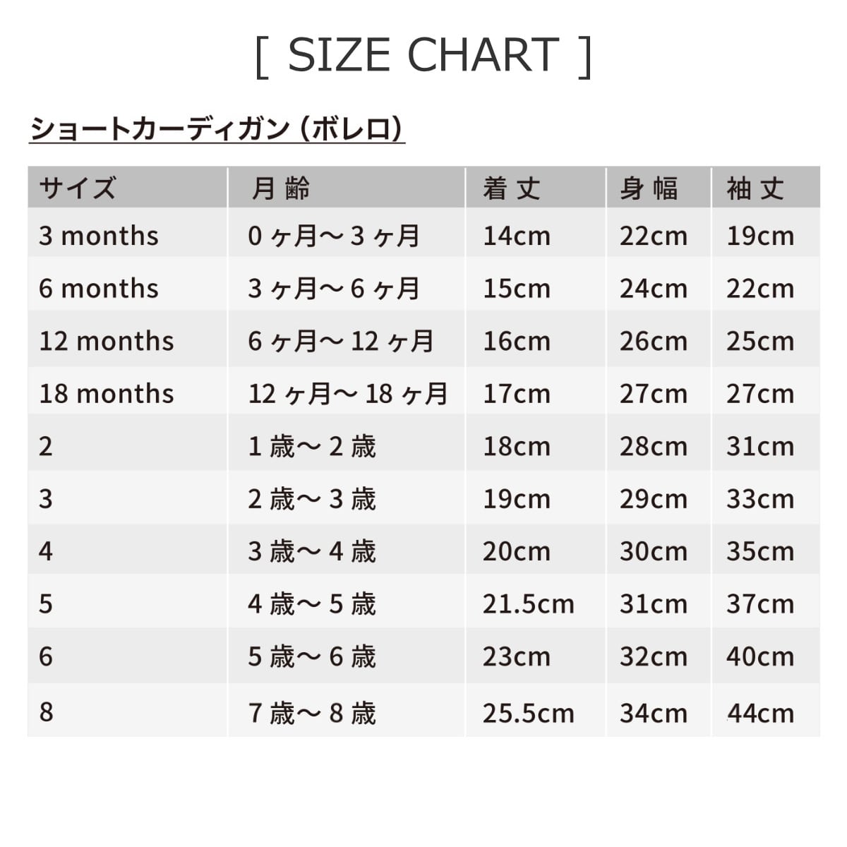 ![]() ショートカーディガン 6ヶ月~2歳 【▲このページの商品】 | ![]() ショートカーディガン 3歳~8歳 | ![]() カーディガン 0ヶ月~3歳 |