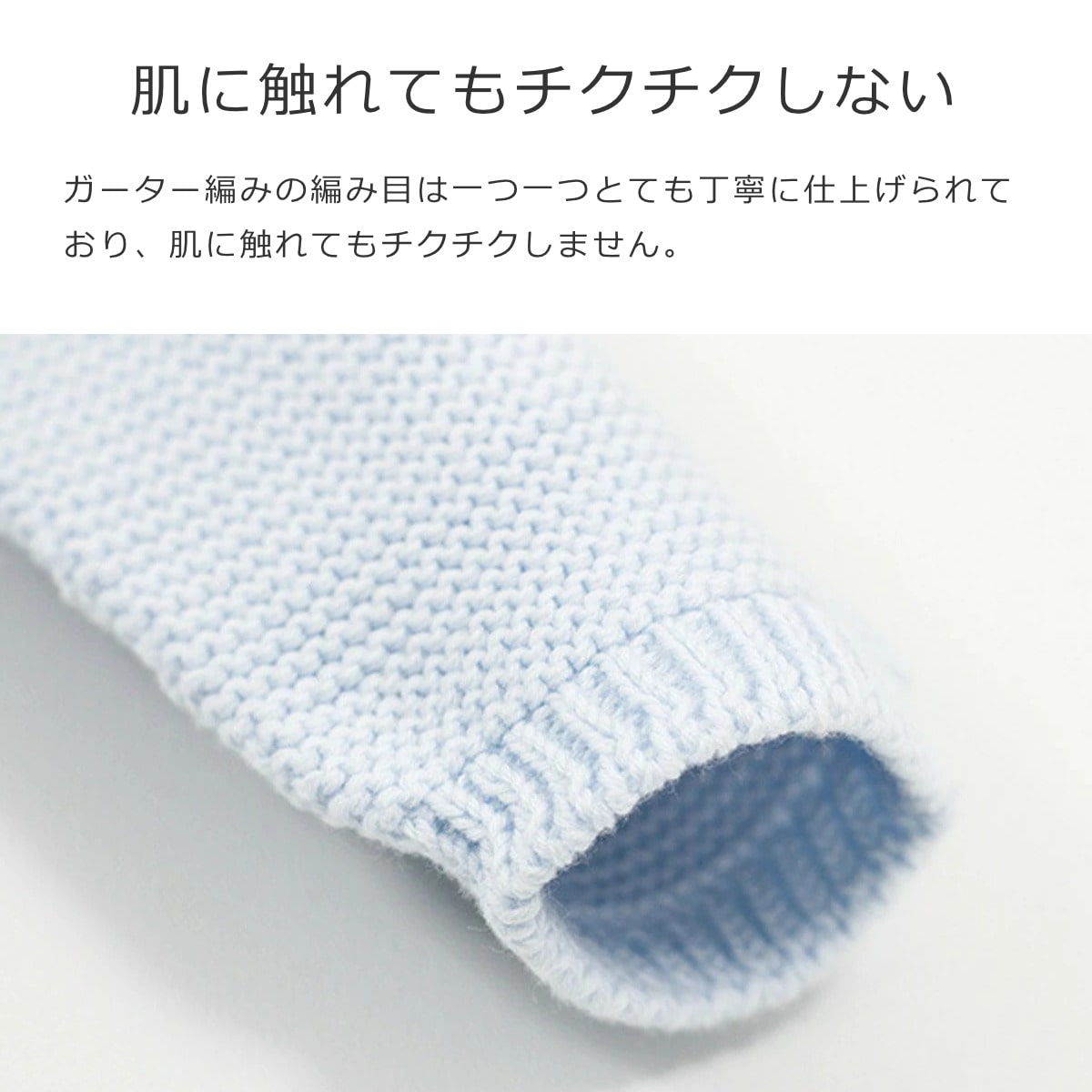 ガーター編みの編み目は一つ一つとても丁寧に仕上げられており、肌に触れてもチクチクしません。