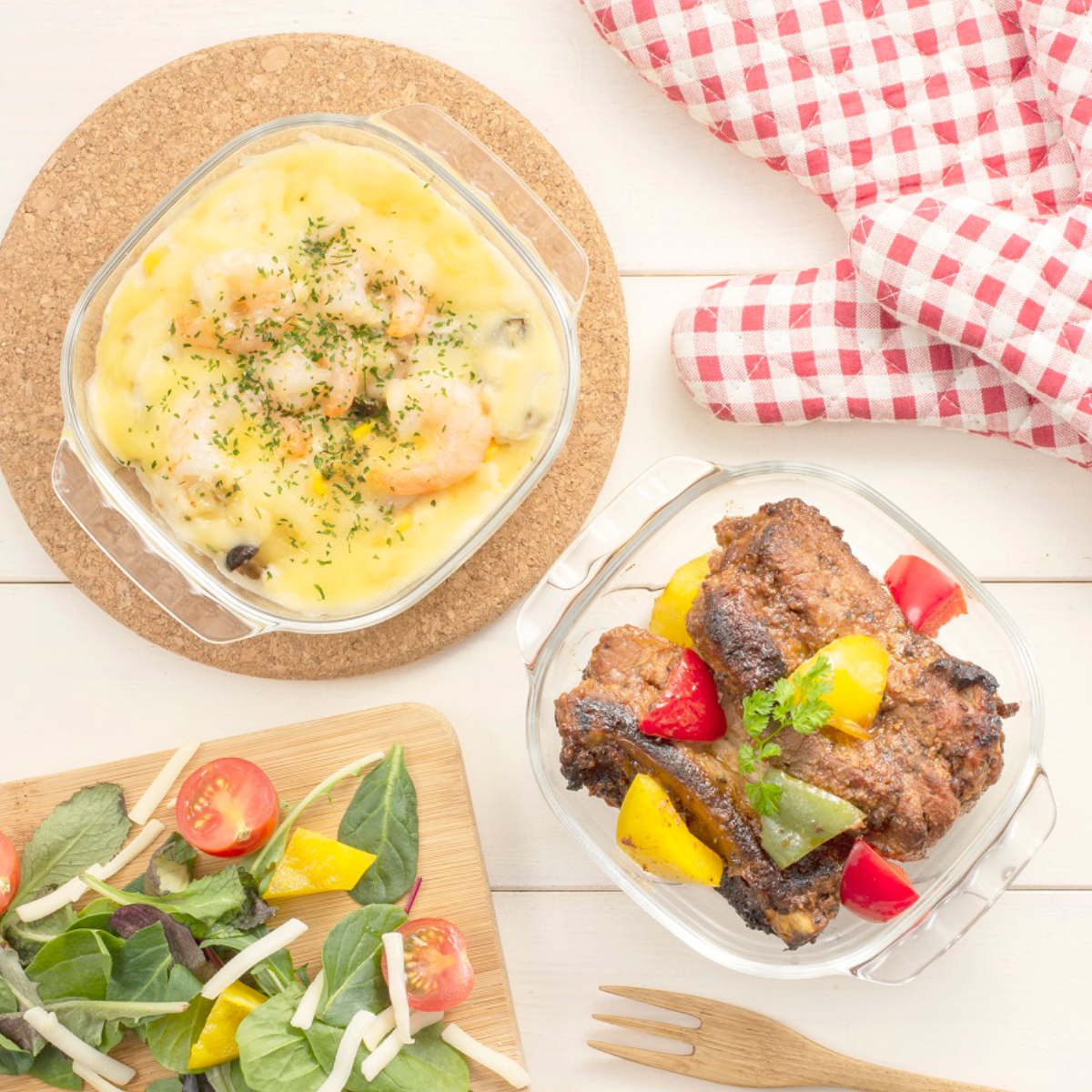 シンプルなデザインのガラス製なので、調理後そのまま器として食卓へ出すことができます。オーブン料理はもちろん、おかずからお菓子まで幅広くご使用いただけます。400mlは副菜や取り分け用、900mlはメイン料理やワンプレートの盛り付けなど、日常使いのお皿としても活躍します。