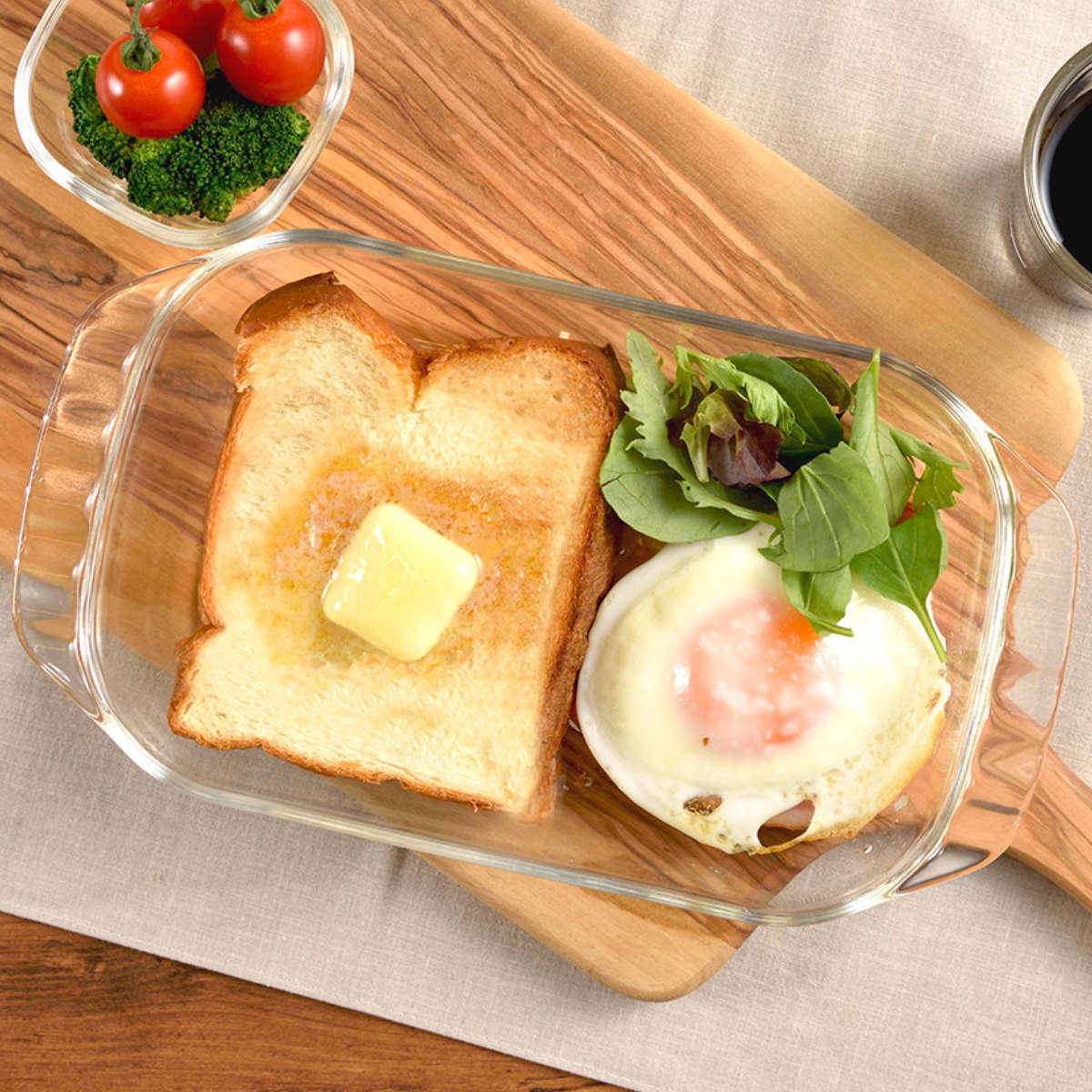 ニオイや色移りがしにくい、耐熱ガラス製のトースター皿です。ガラスの透明感がお料理の彩りを引き立て、食卓を明るく華やかに演出します。