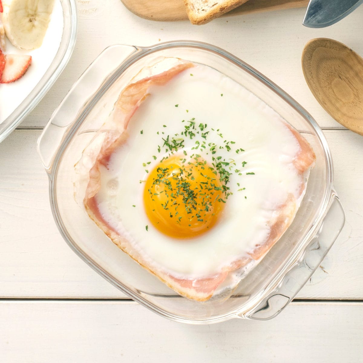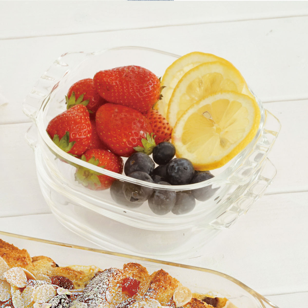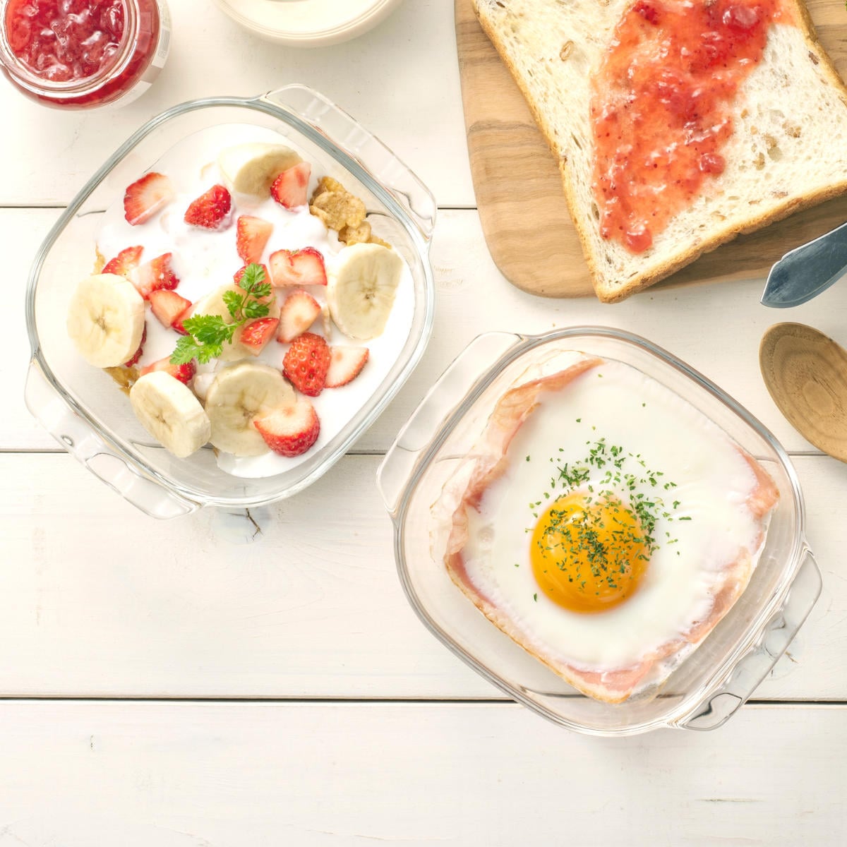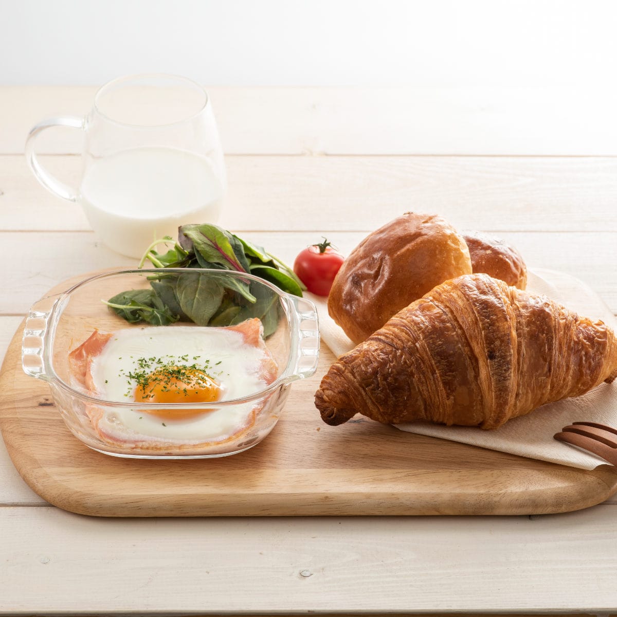 シンプルなデザインのガラス製なので、調理後そのまま器として食卓へ出すことができます。オーブン料理はもちろん、おかずからお菓子まで幅広くご使用いただけます。副菜や取り分け用など、日常使いのお皿としても使いやすいサイズです。