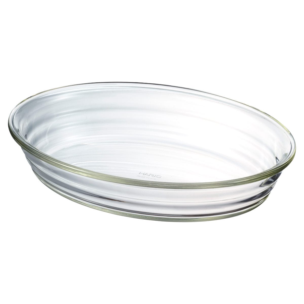 ●100年続いた、熱に強く、酸にも強い耐熱ガラスの技術「HARIO Glass」を用いたオーバル皿です。