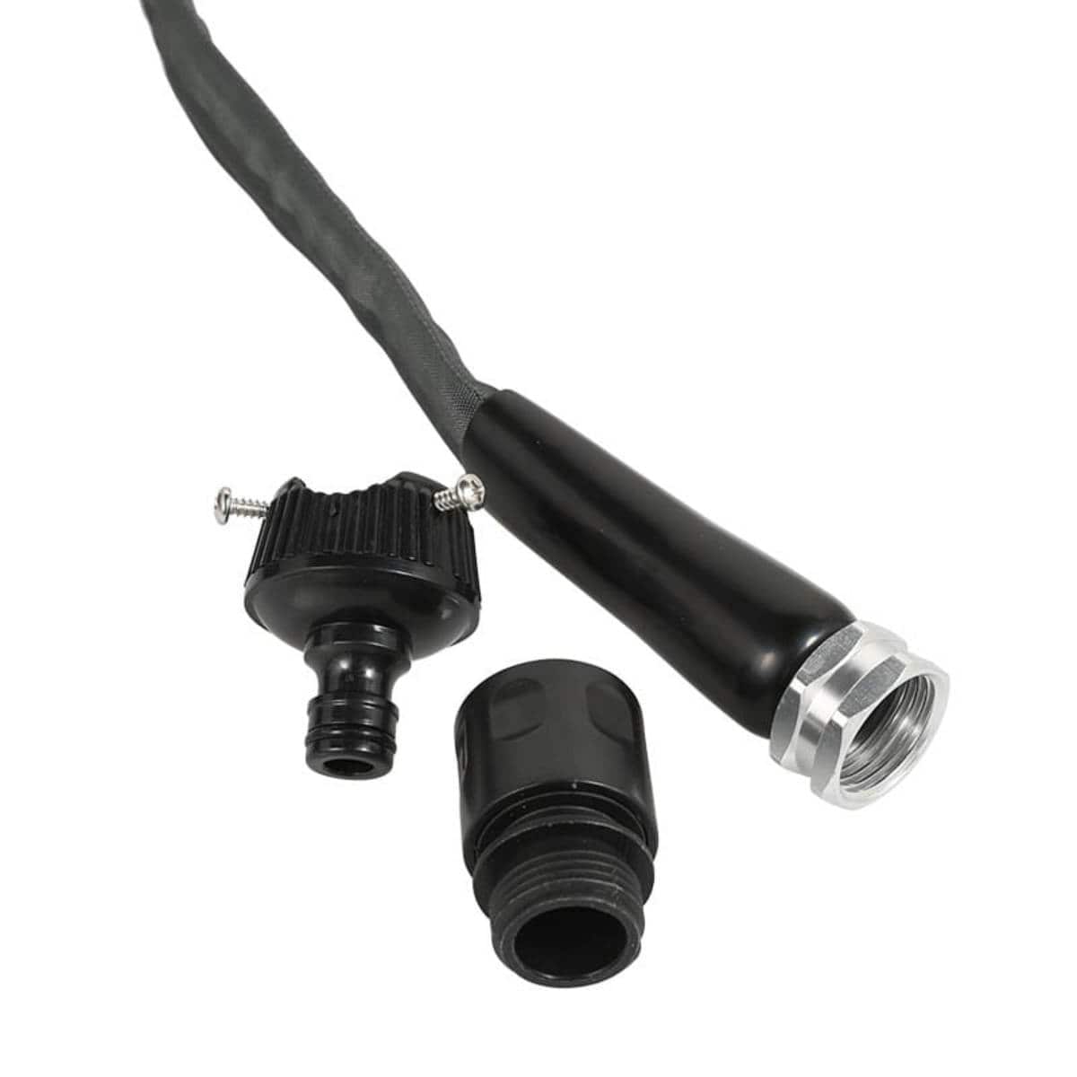 ドライバーで水道の蛇口に取り付ける蛇口コネクターとホースに取り付けするコネクターが付属しています。