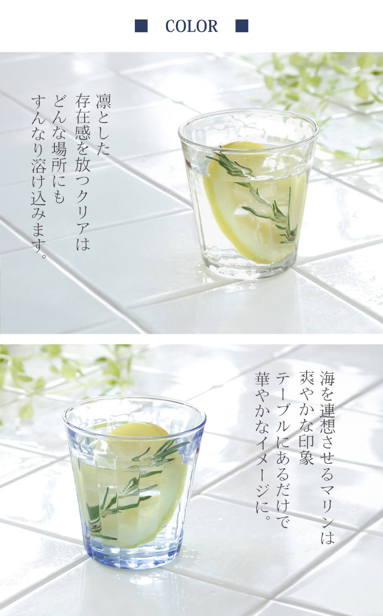 | 注意事項 | ※商品ページ内には別の商品を含む画像を使用しています DURALEX製品は、製造上、気泡やすり傷、しわ模様、飲み口の凹凸、底面の線、軽いぐらつきなどが見られる場合があります。 これらは製品の特性で、ご使用には問題ありません。 そのため、不良品ではなく返品・交換の対象外となります。 あらかじめご了承のうえ、ご購入をお願いいたします |