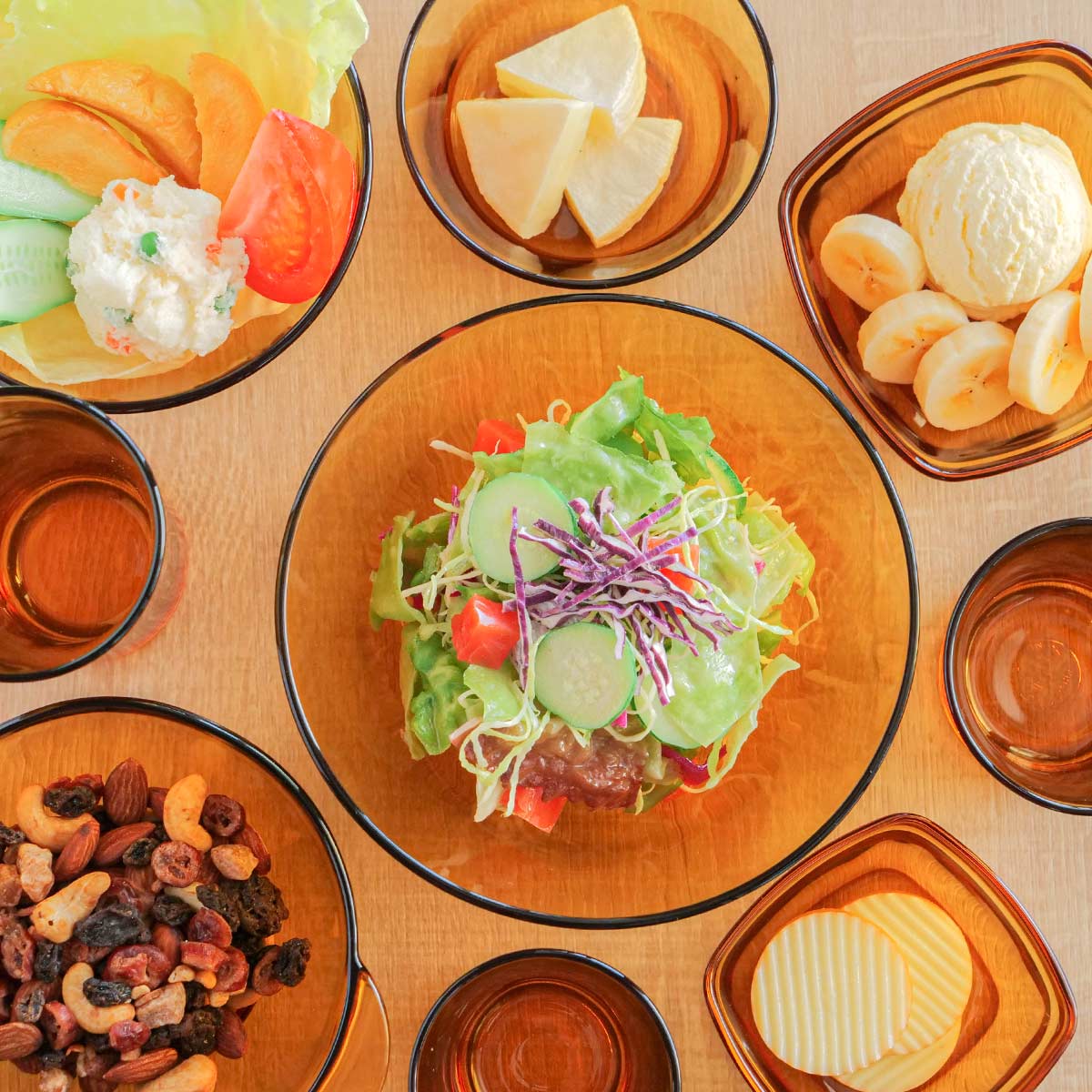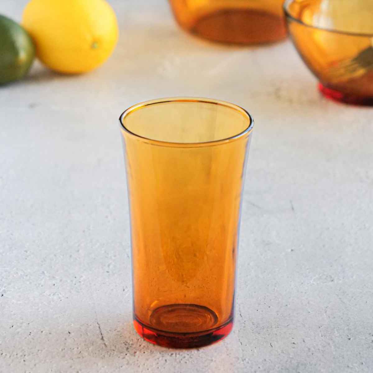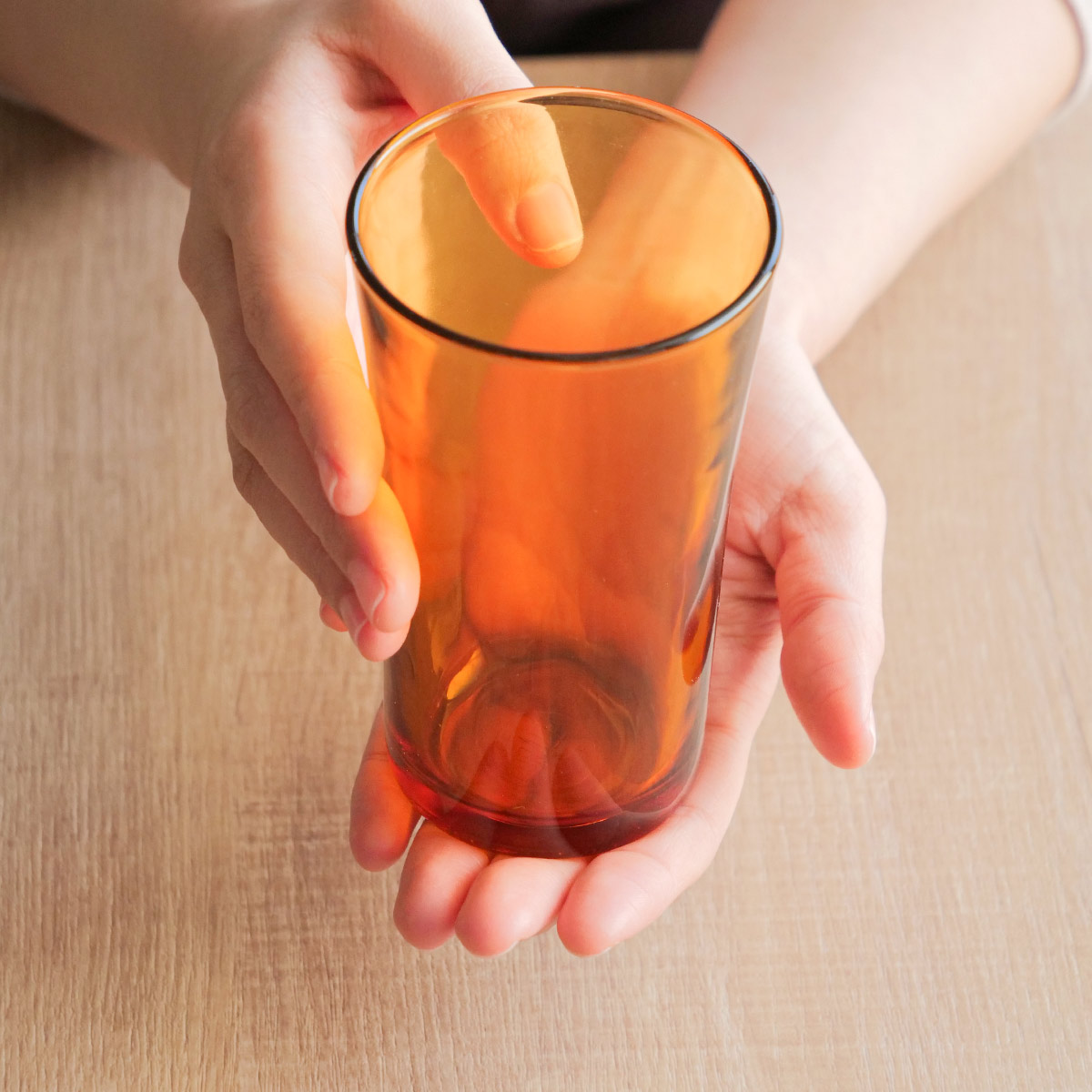 光がグラスを屈折し、アンバーカラー独特の美しい陰影を楽しむことができます。食卓に取り入れると一気にカフェのようなお洒落な雰囲気に。使いやすさはもちろん、目で見ても楽しめるので毎日のお食事が楽しみになること間違いなしです。