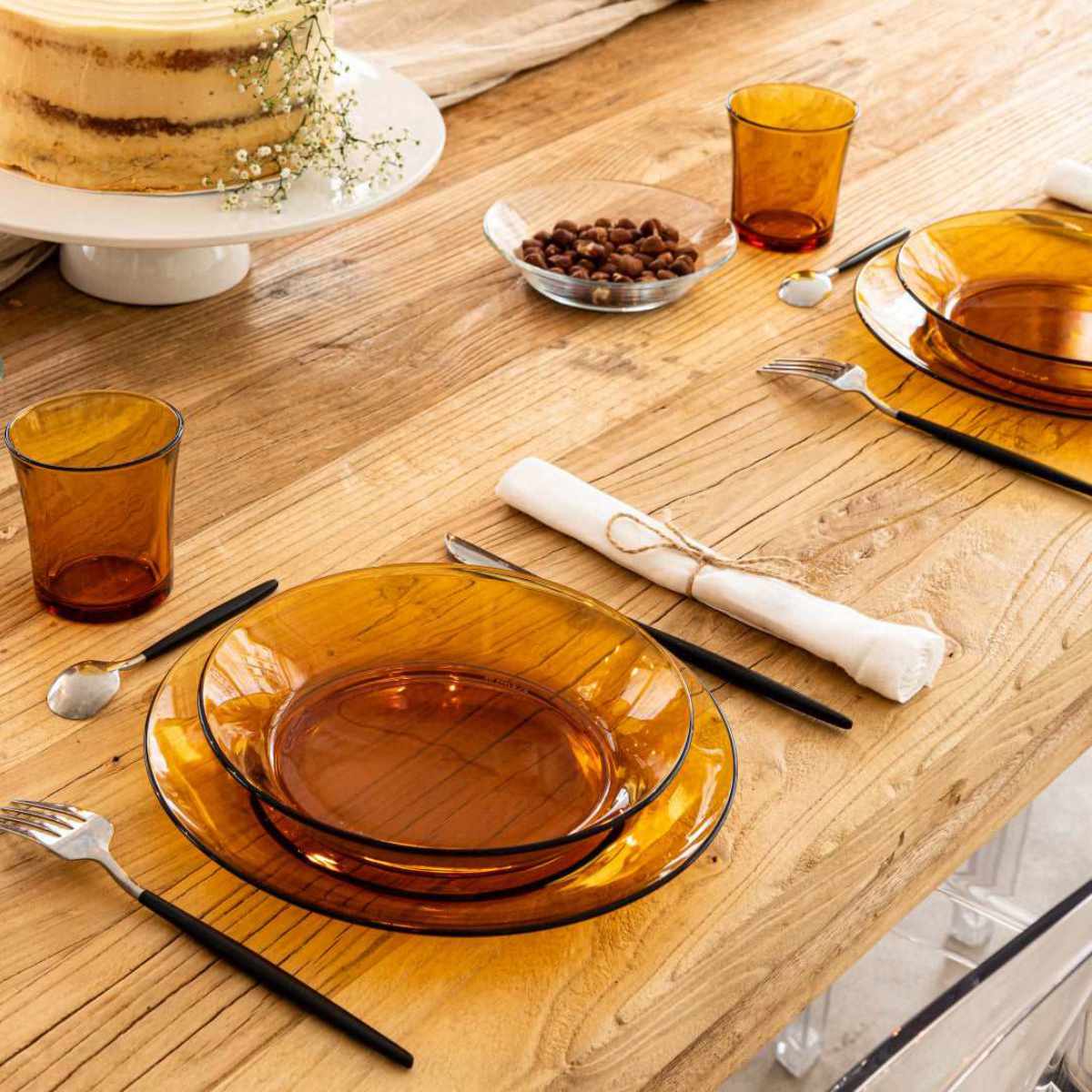 世界で始めて強化ガラス製タンブラーとして発売されて以降、長い間人々に慕われ続けている食器ブランド、デュラレックス。ご家庭だけでなく飲食店にも広く使われ、そのシンプルで飽きのこないデザインは世界中で愛されています。「AMBER(アンバー)」シリーズの特長でもある色鮮やかな琥珀色は、お料理を美しく彩り、食卓に優しく馴染んでくれます。