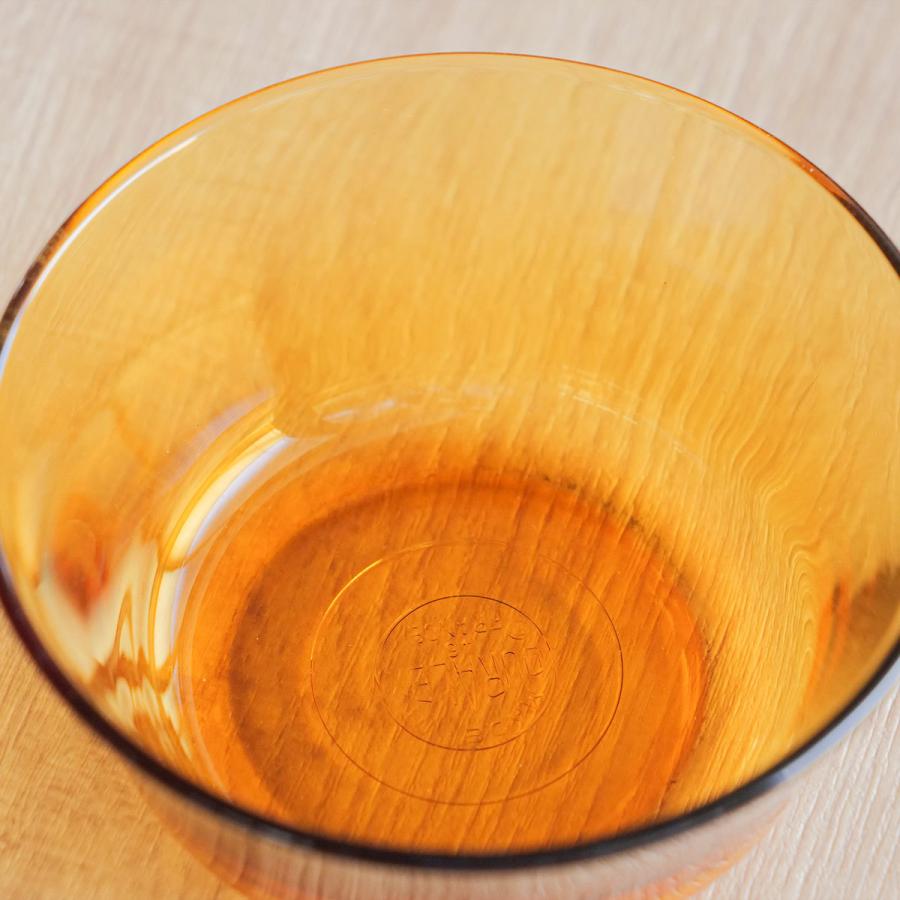 表面はつるつると滑らかな質感です。程よい厚みと重さで安定感があり、手に沿うフォルムでしっくりと馴染みます。底面には「DURALEX」の刻印入りです。