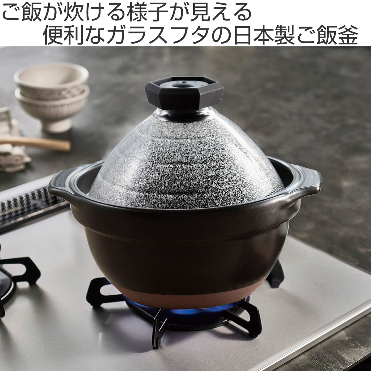 ご飯が炊ける様子が見えるガラス蓋