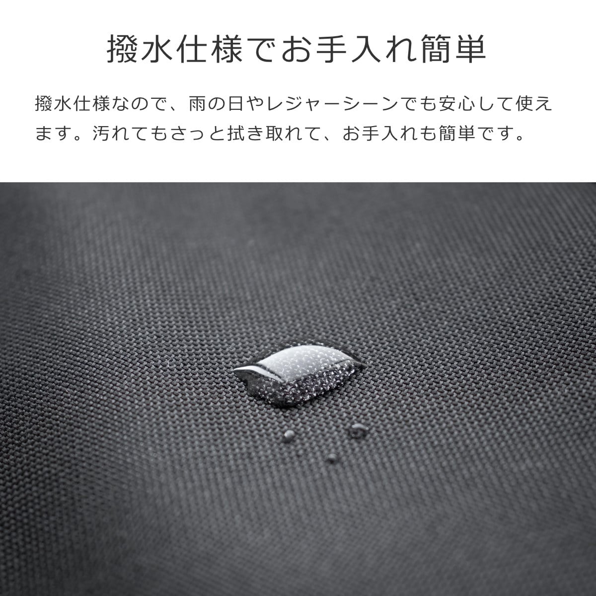 撥水仕様なので、雨の日やレジャーシーンでも安心して使えます。汚れてもさっと拭き取れて、お手入れも簡単です。