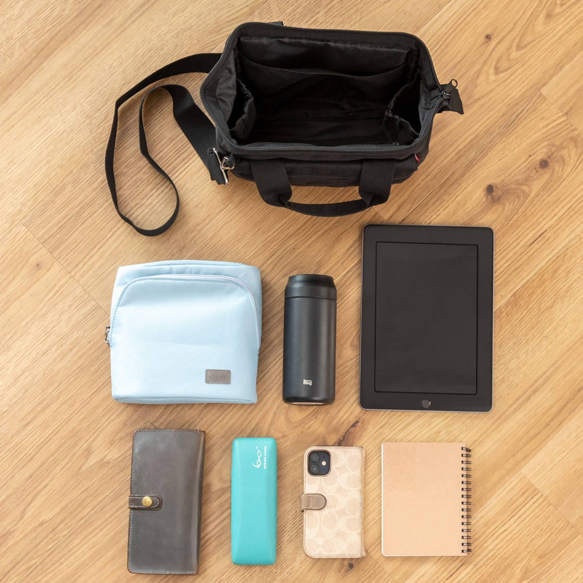ワイヤー入りの開口部は大きく開き、出し入れがスムーズです。側面と底面には、型くずれを防止しながら中身も守ってくれるパッド入りです。