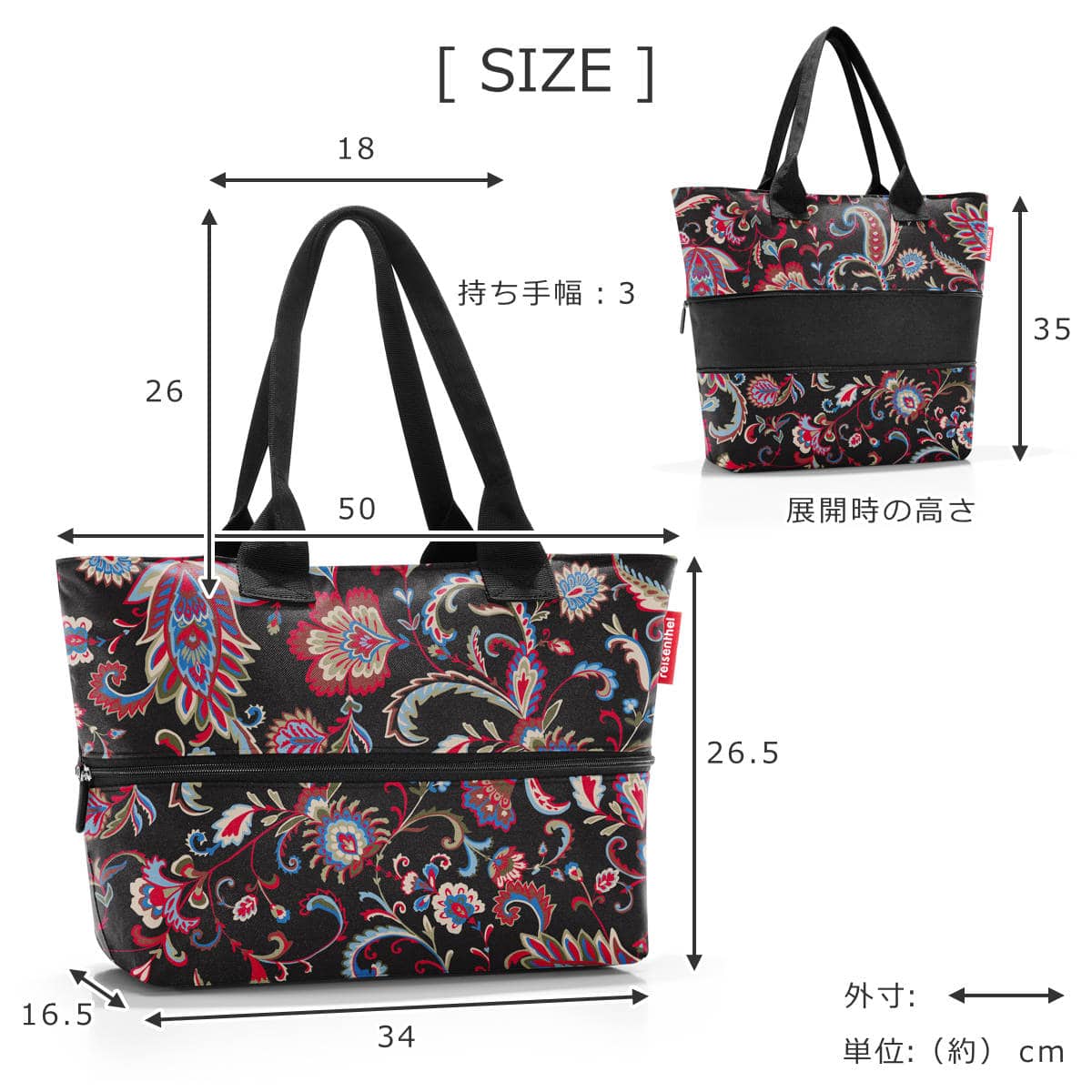 | サイズ | 約 幅50×奥行16.5×高さ26.5~35(cm) 持ち手:約 幅18×高さ26×奥行3(cm) (高さは根本より計測) |