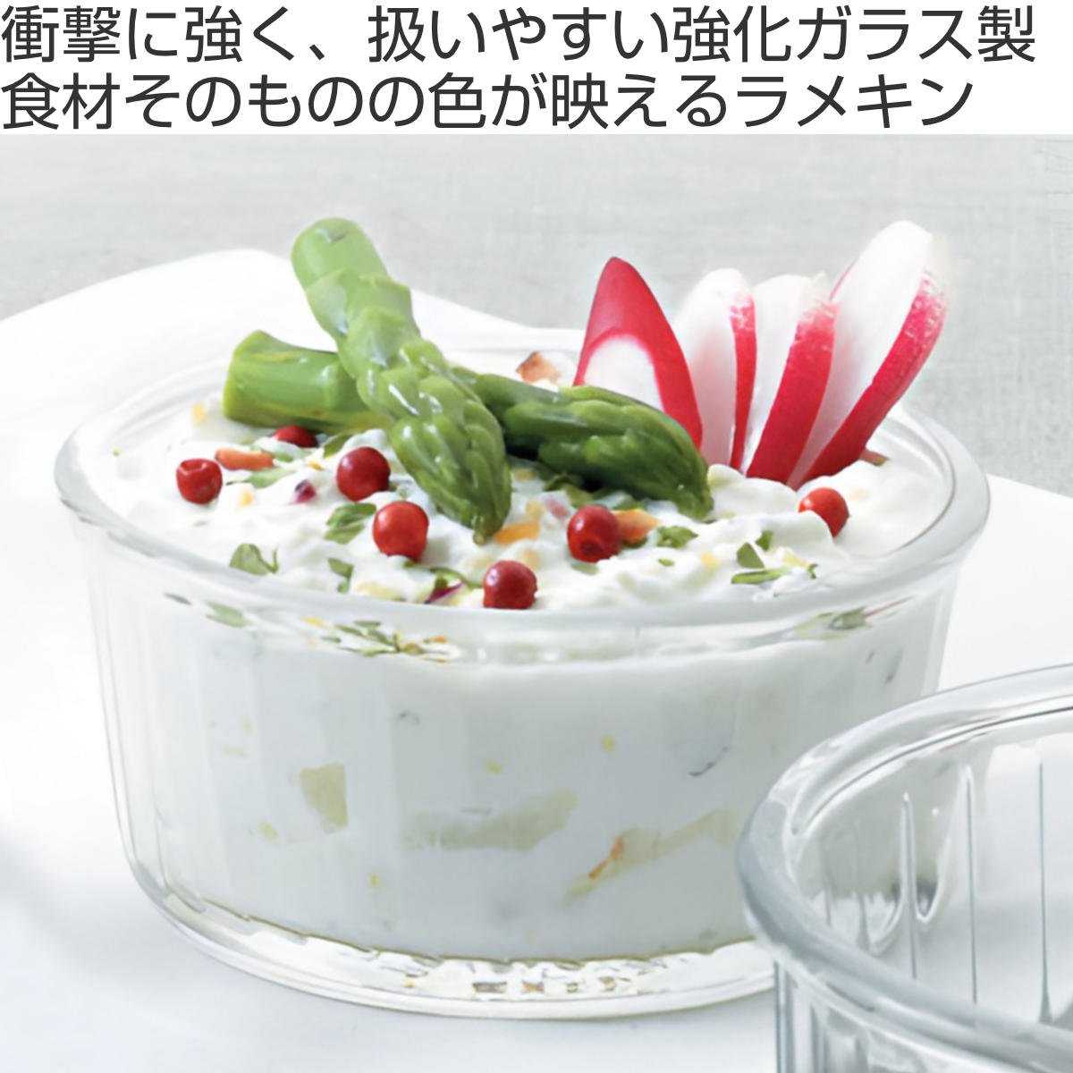 衝撃に強く、急激な温度変化にも耐えることができる全面強化ガラス製のラメキンです。スフレやプディングなどのデザートメニューから、シチューやグラタンなどの温かい料理、ソースやディップ、薬味入れなど、幅広くお使いいただけます。食材そのものの色が映え、食卓に華やかさをプラスしてくれます。