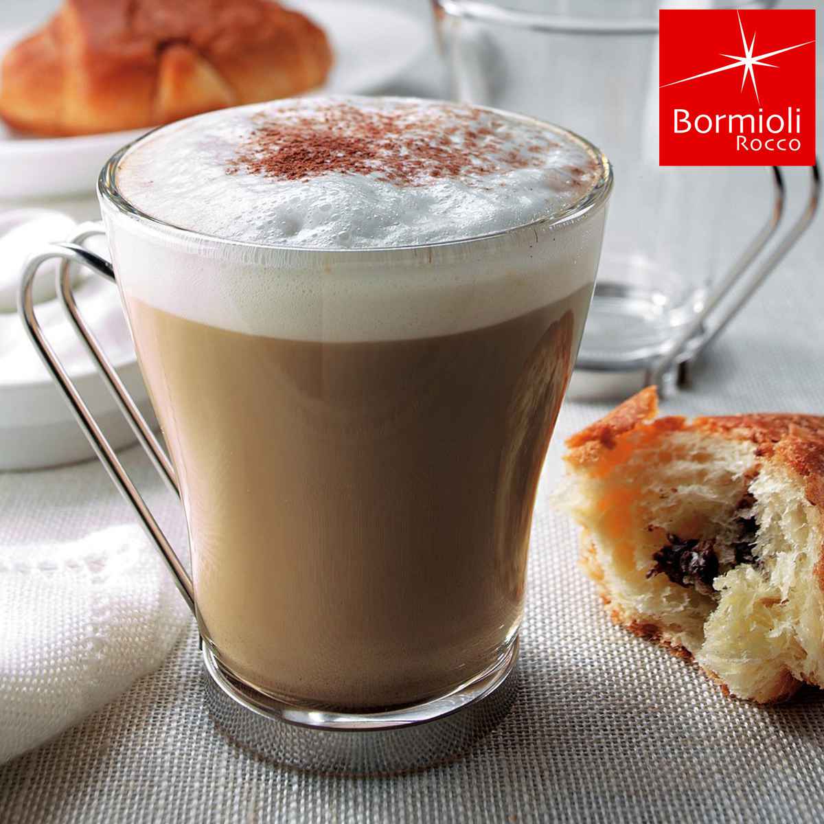 ボルミオリ・ロッコ社「オスロ」シリーズのカプチーノカップです。衝撃に強く、急激な温度変化にも耐えることができる全面物理強化ガラス製で、温かいドリンクはもちろん、冷たいドリンクにもお使いいただけます。