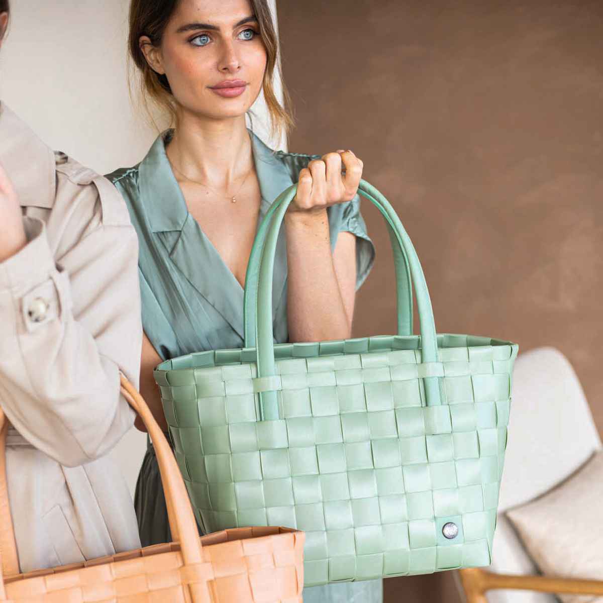 一つ一つ丁寧に仕上げられたハンドメイドバッグです。リサイクルプラスチック素材を使用しており、お洒落なだけでなく環境にも優しいアイテムです。軽量で、汚れた時は水拭きでサッと拭き取ることができます。