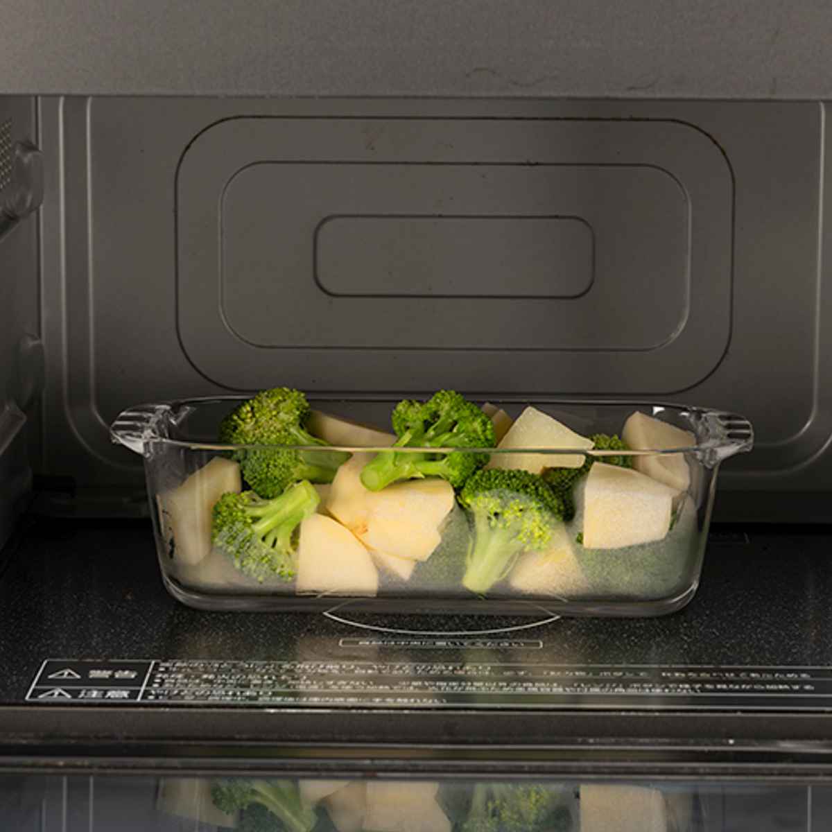 食洗機・電子レンジ・オーブンに対応しています。耐熱ガラス製なので、においや汚れがつきにくく衛生的にお使いいただけます。