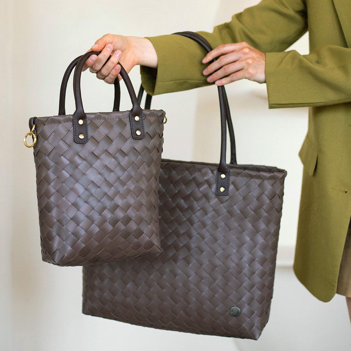 一つ一つ丁寧に仕上げられたミニマルなデザインと、美しいフォルムが魅力的なハンドメイドバッグです。リサイクルプラスチック素材を使用しているため、軽量で、汚れた時は水拭きでサッと拭き取ることができます。