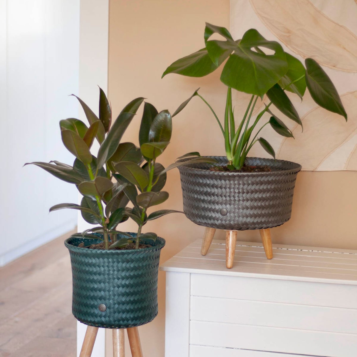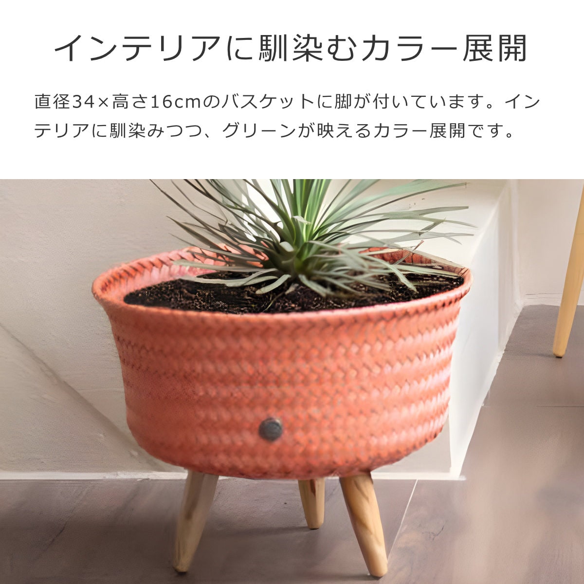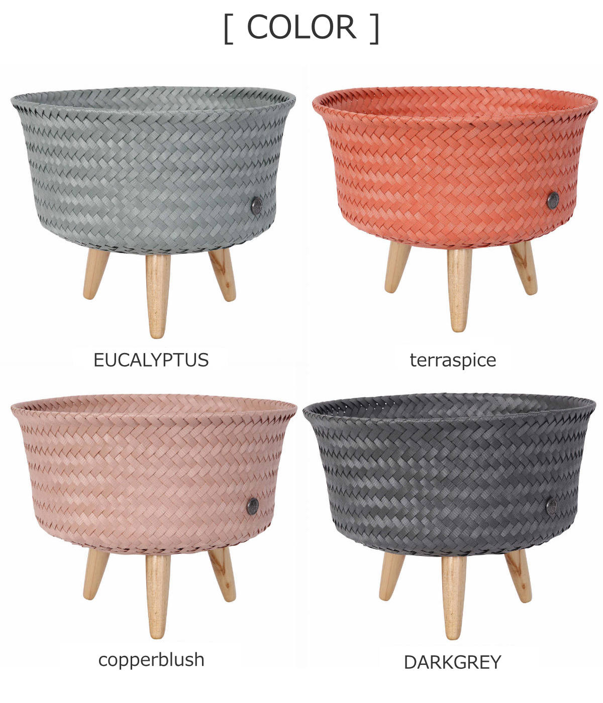 | 材質 | バスケット:ポリプロピレン、リサイクルプラスチック 脚:シナモンウッド |