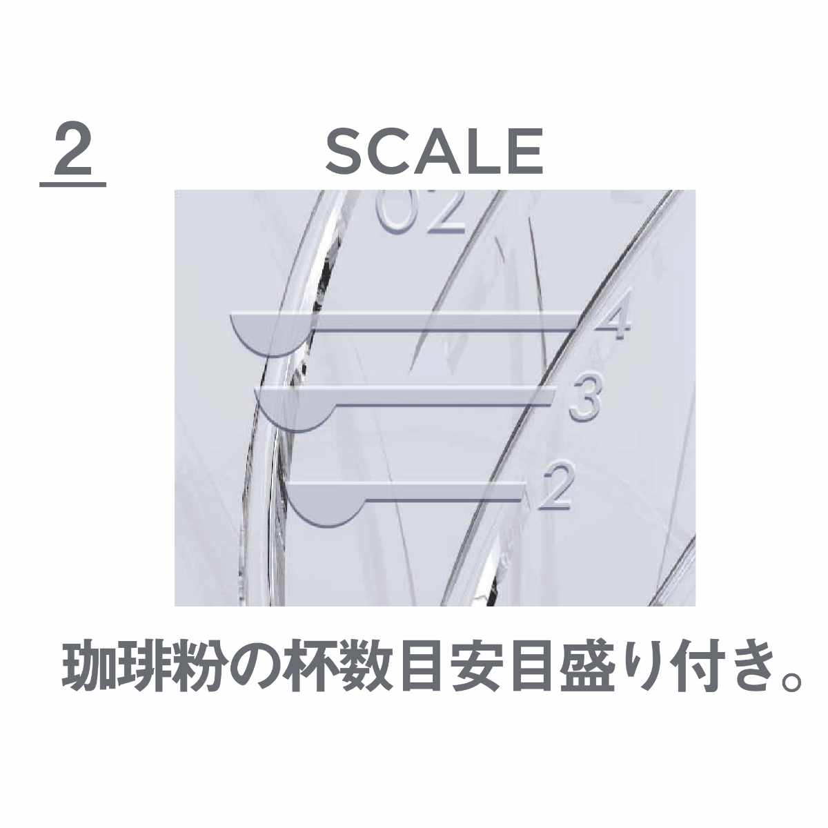 専用のスプーンが不要で、簡単にコーヒー粉の計量ができる目盛り付きです。ハンドドリップ初心者の方も簡単に美味しく淹れられます。